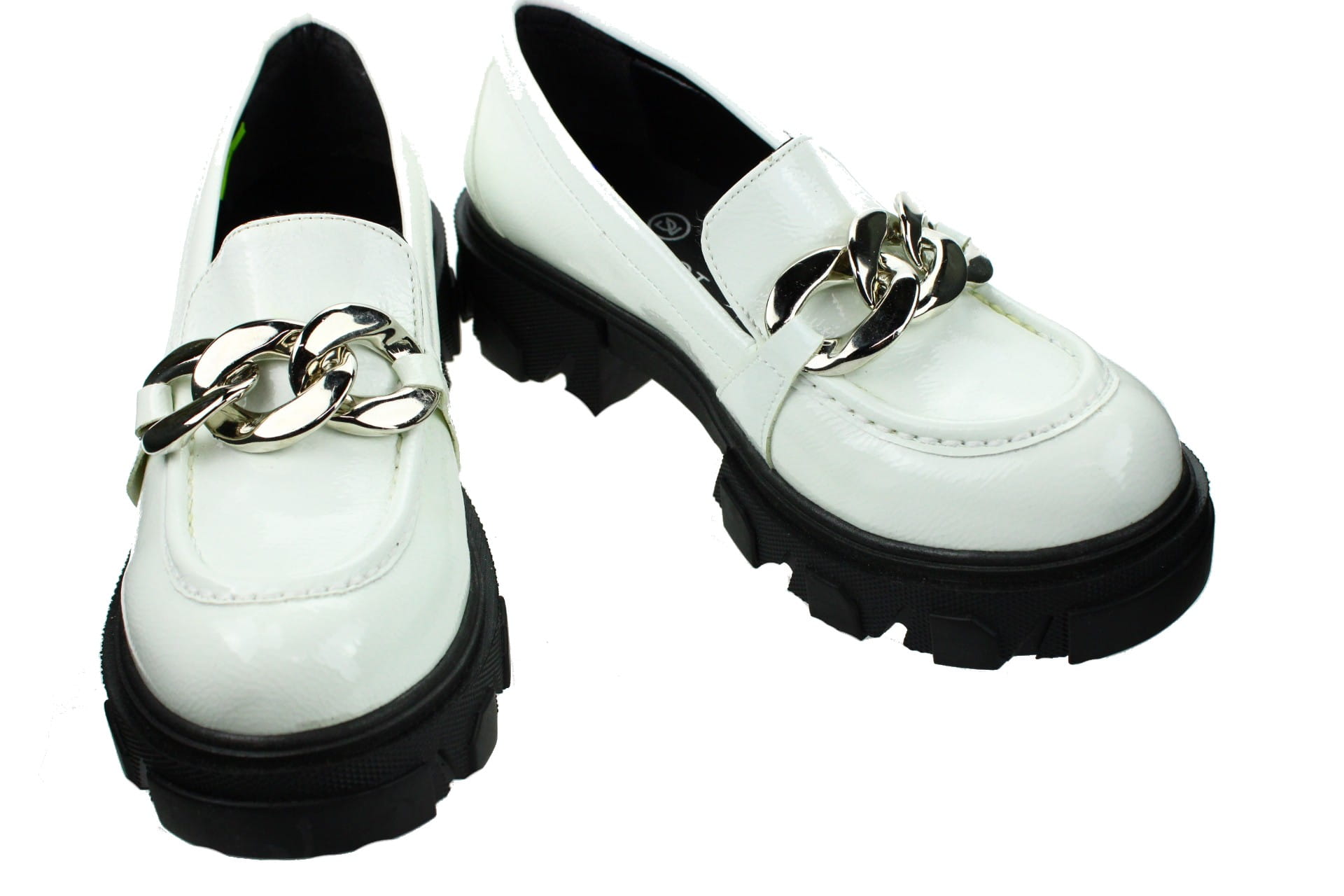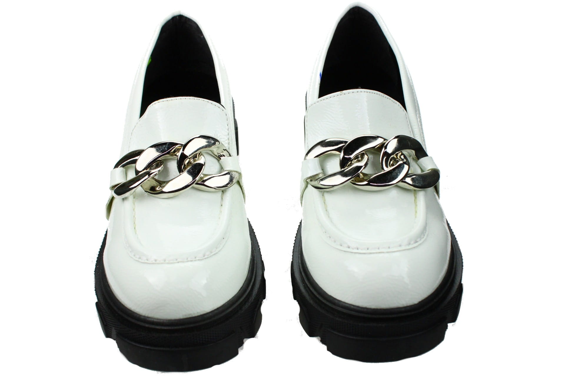 Mokasyny firmy Potocki wykonane są z tworzywa skóropodobnego.Wkładka tekstylna.Wsuwane.  Podeszwa grubości 4,5 cm zapewnia odpowiednią stabilizację