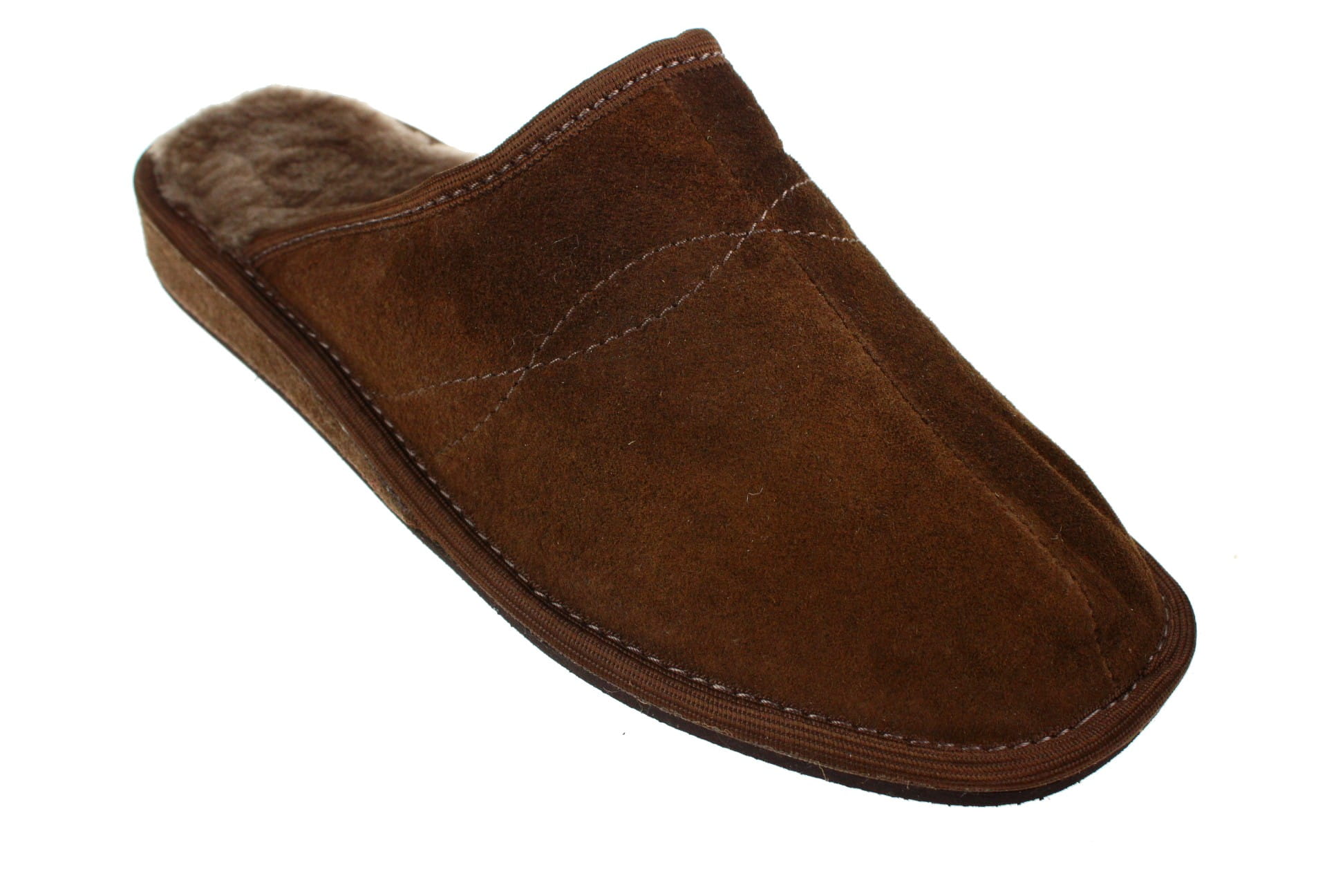 Laczki męskie z wysokiej jakości skóry zamszowej, wykonane w nowoczesnym design. Wnętrze wyściełane naturalnym kożuszkiem co daje poczucie ciepła i wysokiego komfortu. Podeszwa gumowa antypoślizgowa. Przeznaczone do użytku domowego, są lekkie, ciepłe i wygodne.