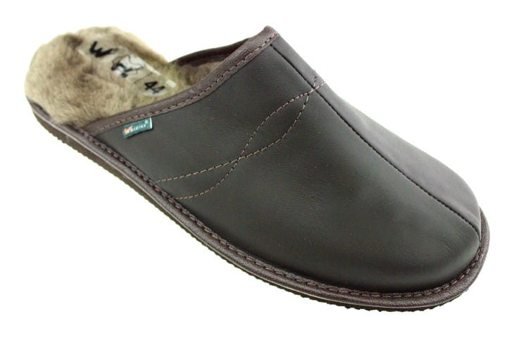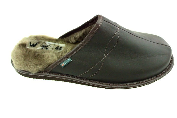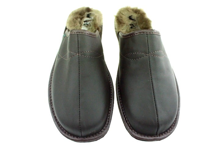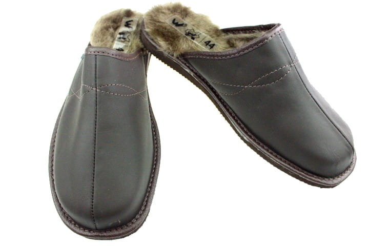 Laczki męskie z wysokiej jakości skóry cielęcej, wykonane w nowoczesnym design. Wnętrze wyściełane naturalnym kożuszkiem co daje poczucie ciepła i wysokiego komfortu. Podeszwa gumowa antypoślizgowa. Przeznaczone do użytku domowego, są lekkie, ciepłe i wygodne.