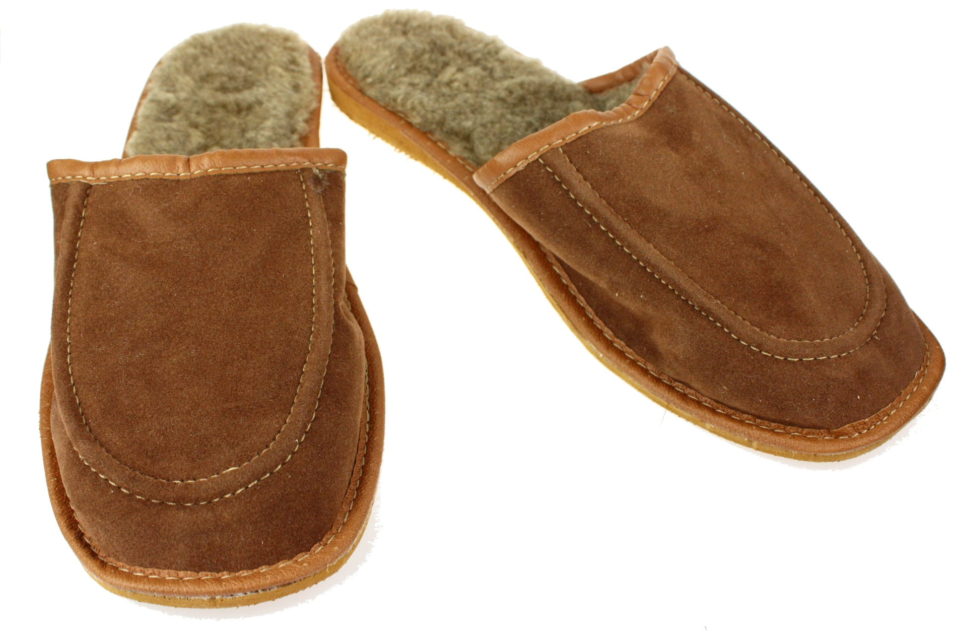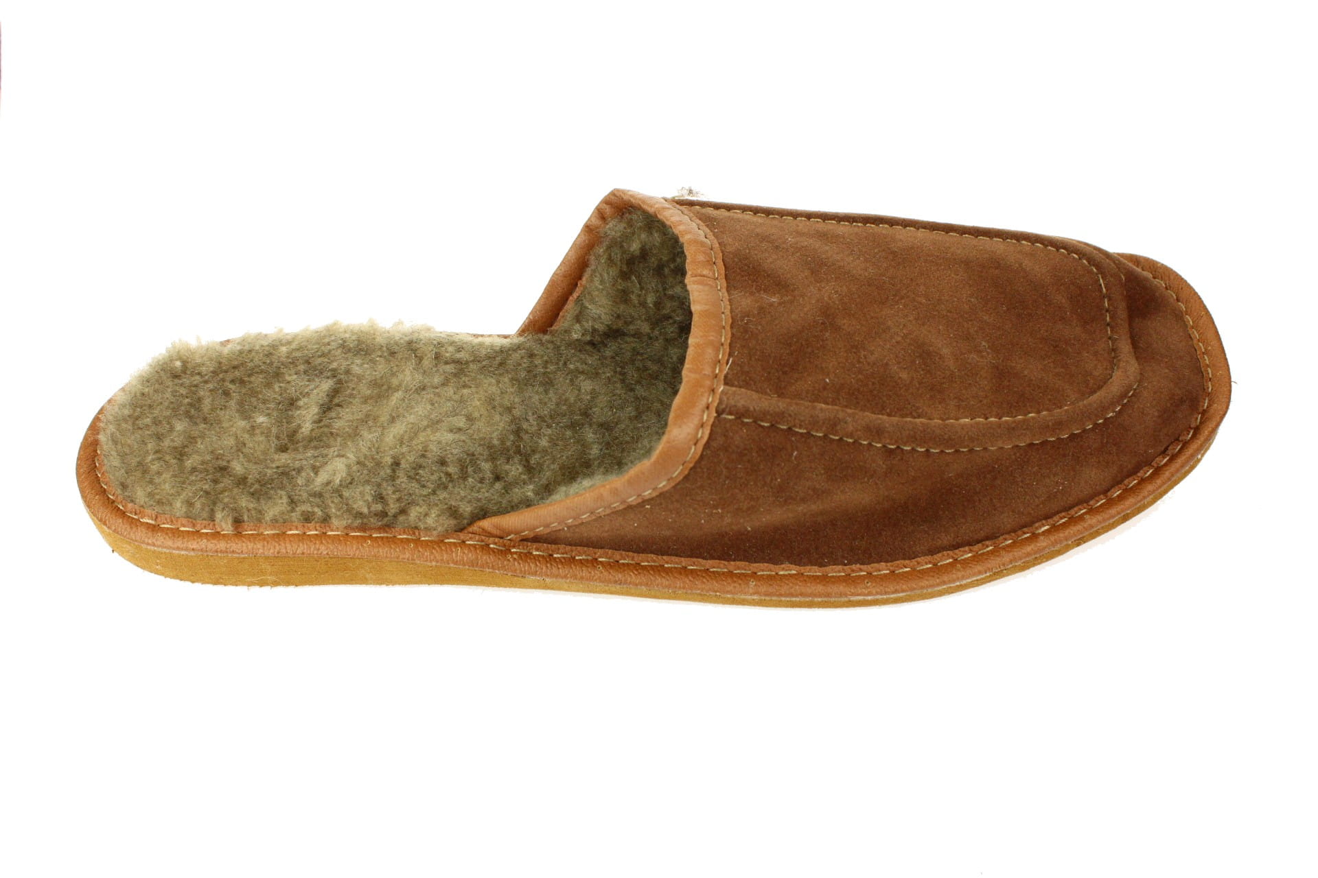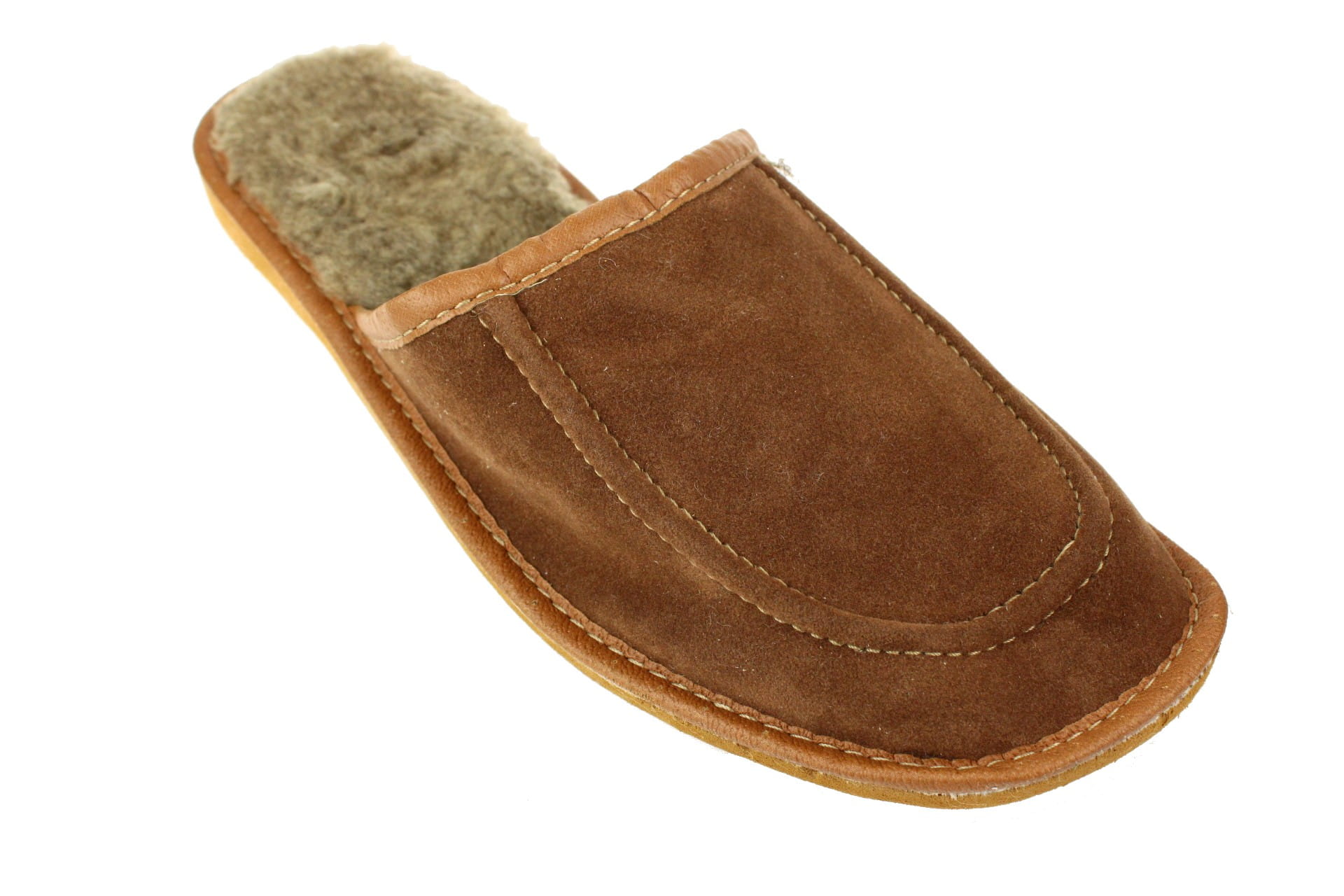 Pantofle męskie wykonane ze skóry zamszowej w kolorze brązowym. Wnętrze wyściełane jest miękką i ciepłą dzianiną z domieszką wełny owczej, zapewniając stopom komfort termiczny. Podeszwa gumowa antypoślizgowa, lekki klin podnosi delikatnie stopy. Przeznaczone do użytku domowego, są lekkie i wygodne.