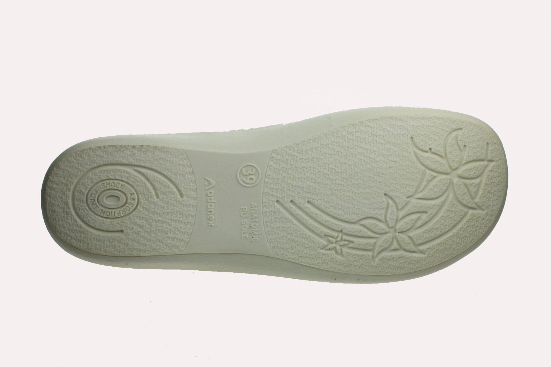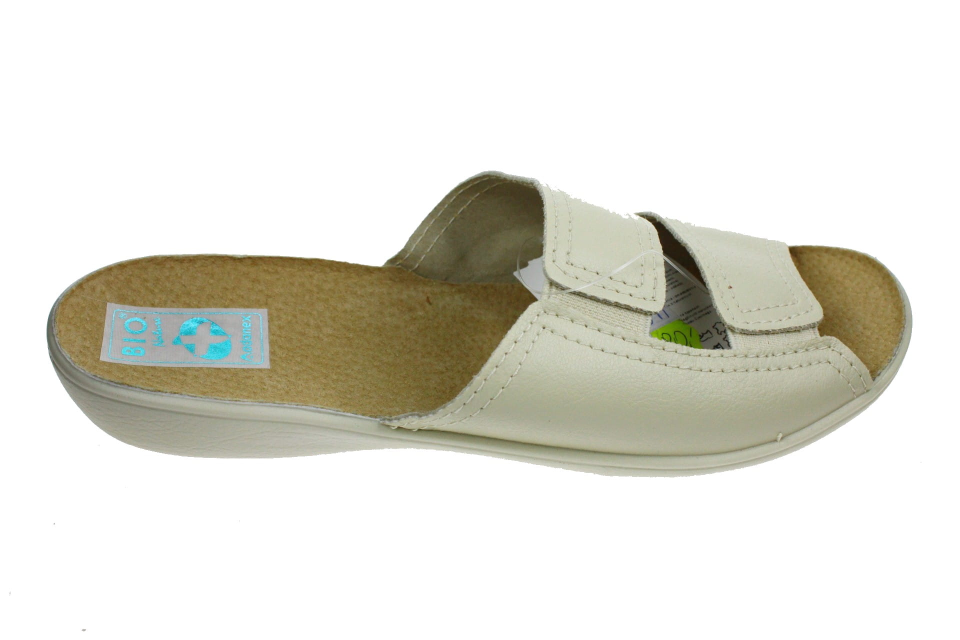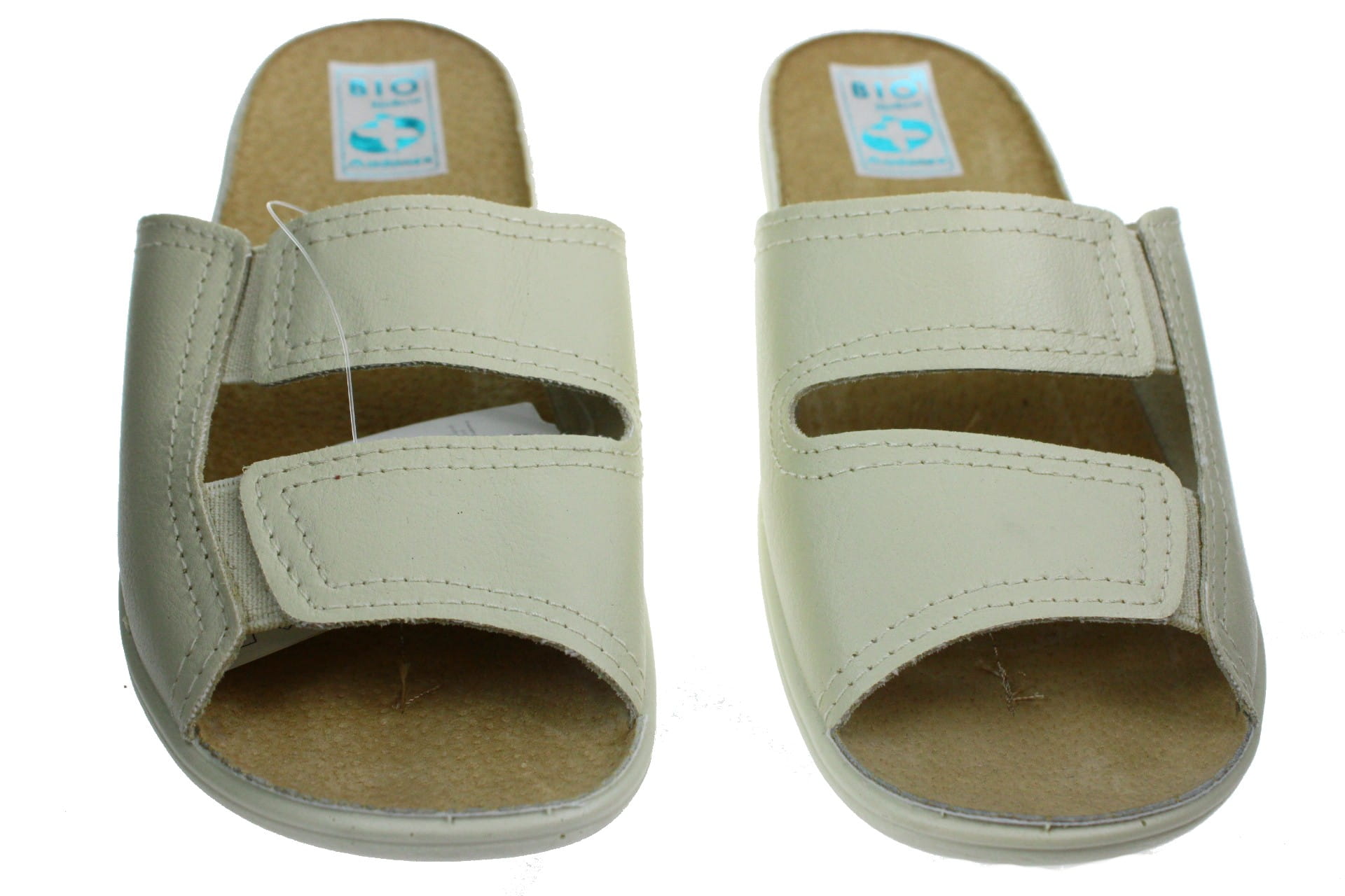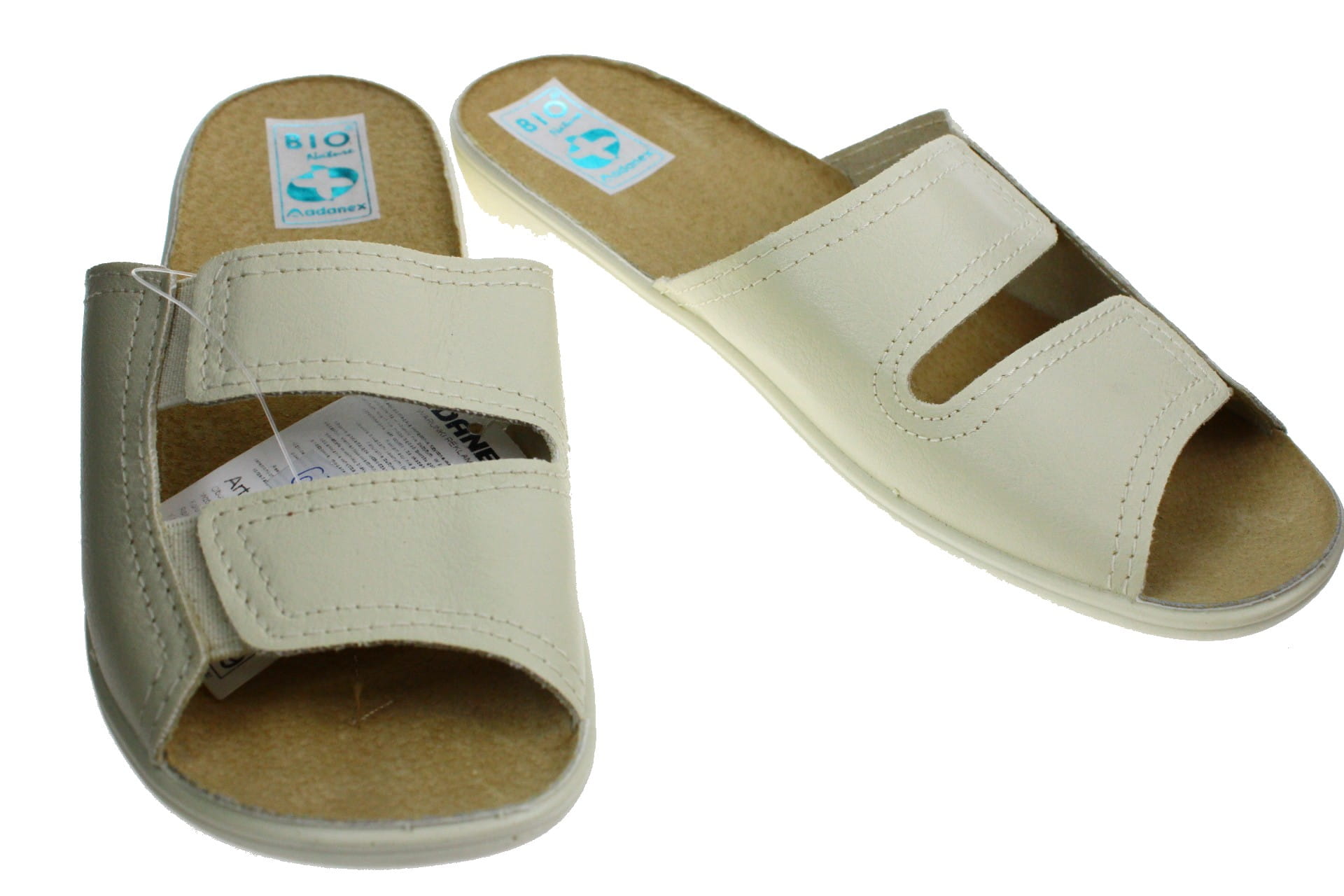 Laczki damskie, obuwie firmy adanex wykonane są z najwyższej jakości skóry. Dwa paski, w które wkomponowane są gumki , umożliwiają regulację tęgości. Przeznaczone zarówno do użytku domowego jak i wyjściowego w sezonie letnim. Ponadto obuwie wykorzystywane może być w przychodniach, szpitalach itd. Są bardzo wygodne a zastosowany na podeszwie system lekkiego i elastycznego PU sprawia, że podczas chodzenia amortyzowane są mikrowstrząsy, co daje poczucie komfortu. Klin o wysokości 3 cm, wyściółka skórzana.