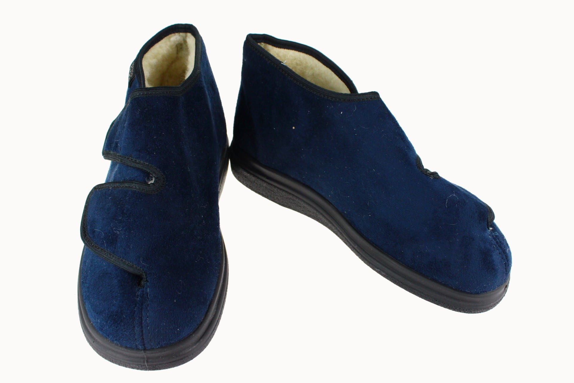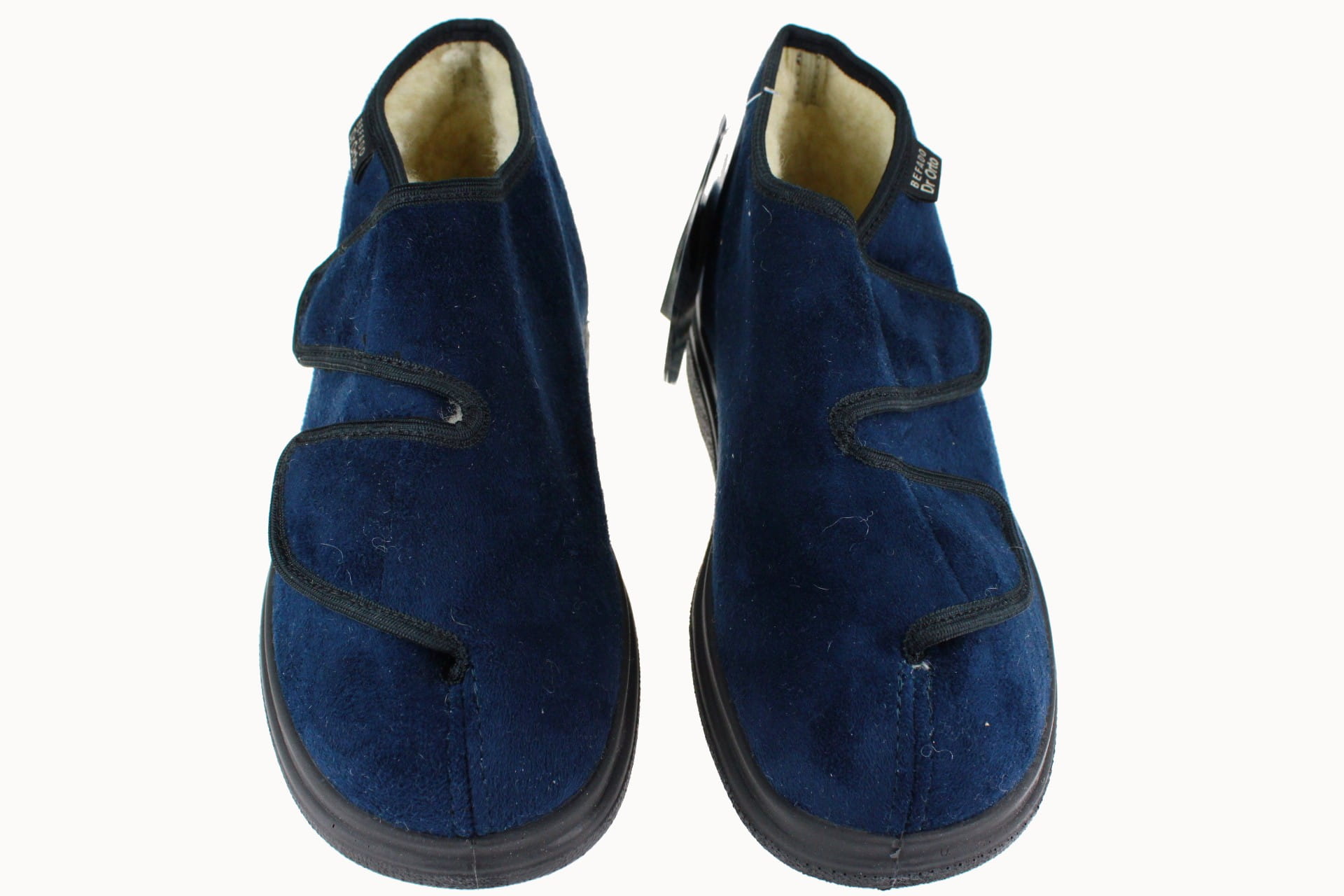 Kształt i wymiary wnętrza obuwia dostosowane do wymagań stóp o dużej wrażliwości. Zastosowane wysokiej jakości, opiankowane materiały spełniają wymogi higieniczne oraz delikatnie dopasowują się do stopy. Obuwie o łatwej wzuwalności wykonane bez zbędnych przeszyć i łączeń. Gwarantuje wygodę i komfort chorym stopom.Na wyściółkę zastosowano wełnę owczą. Zapinane na dwa rzepy.