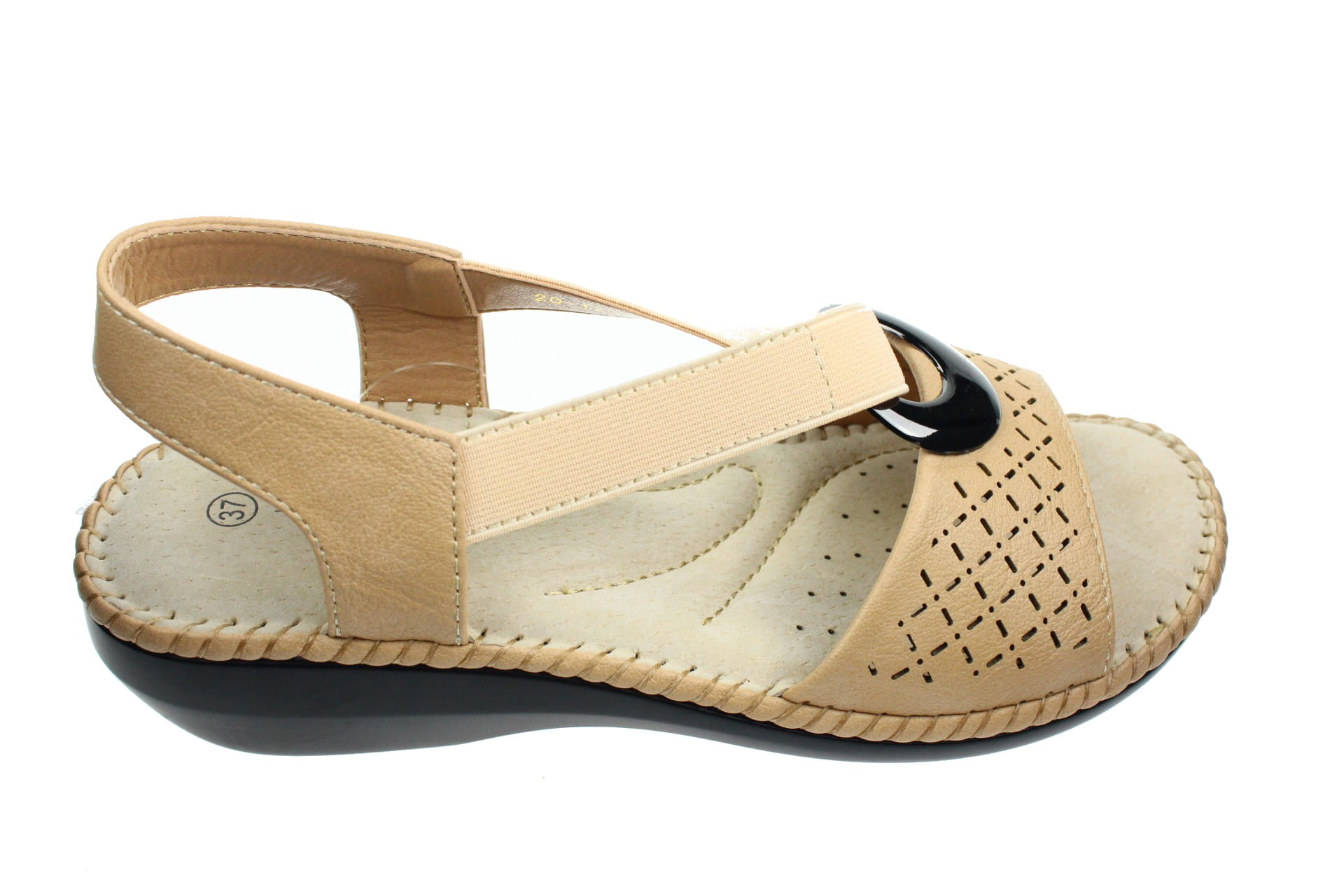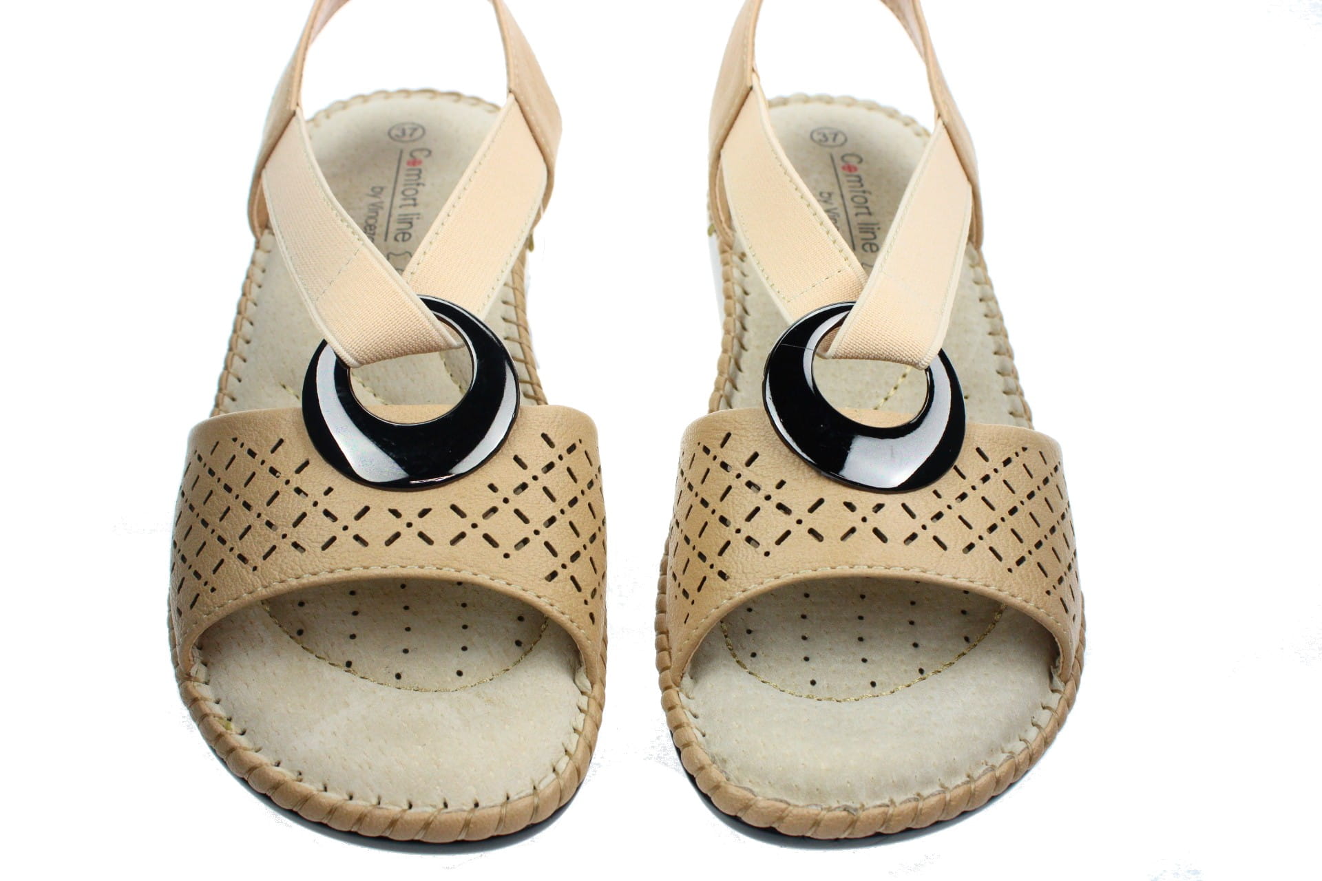 Obuwie damskie wykonane w modnym design. W cholewce wkomponowany pasek zapinany na pięcie. Podeszwa elastyczna, wykonana z wysokogatunkowego tworzywa, odporna na ścieranie. Klin o wysokości ok. 4 cm. Obuwie jest lekkie i bardzo wygodne dzięki czemu zapewnia komfort i wygodę zmęczonym stopom. Przeznaczone zarówno do użytku domowego jak i na zewnątrz.