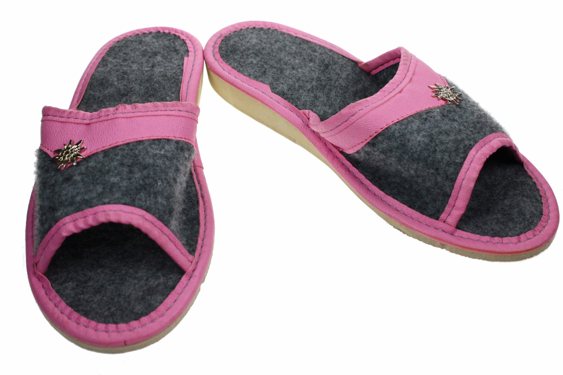 699 A. Laczki damskie filcowe Pawlikowscy z szarotką-różowe