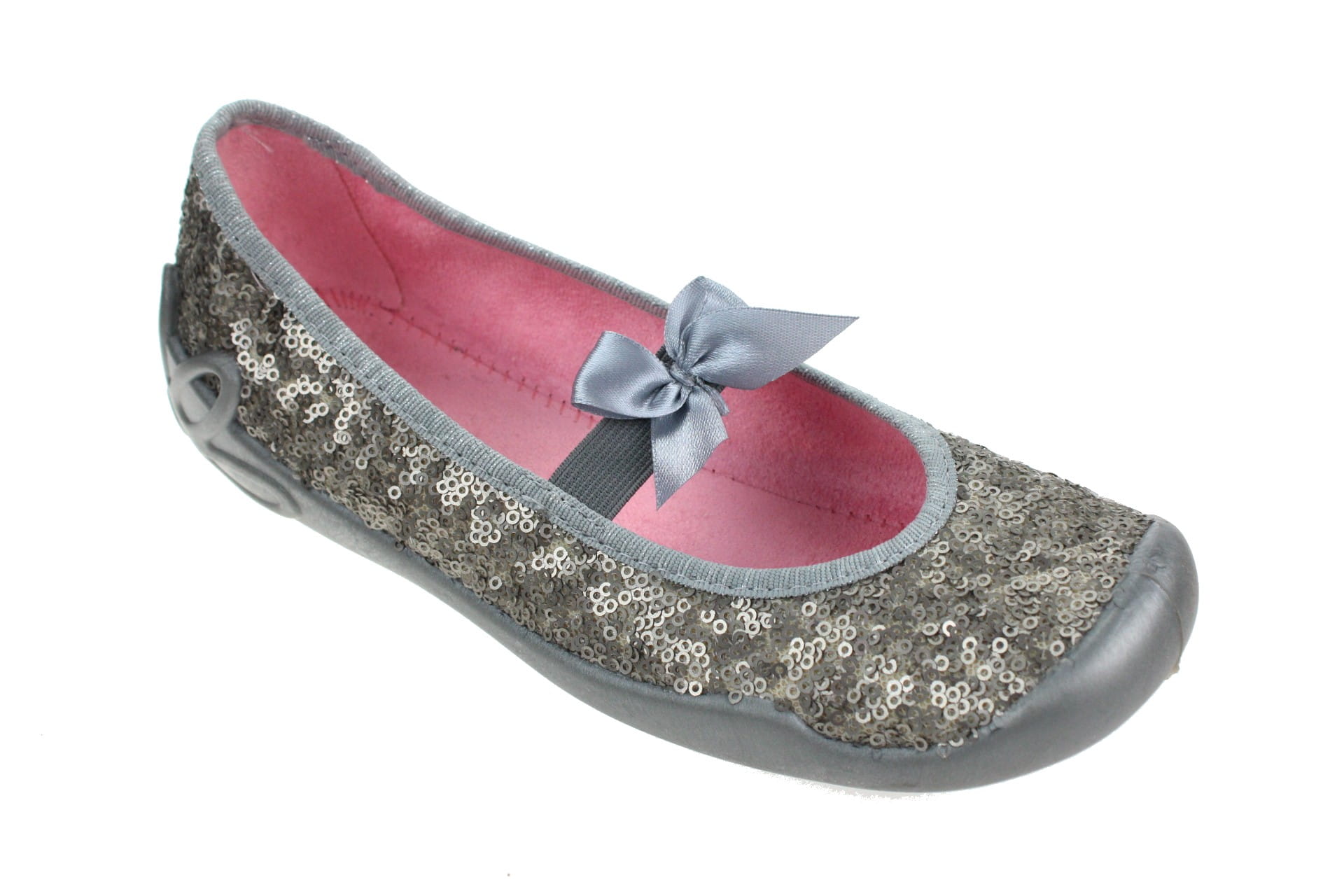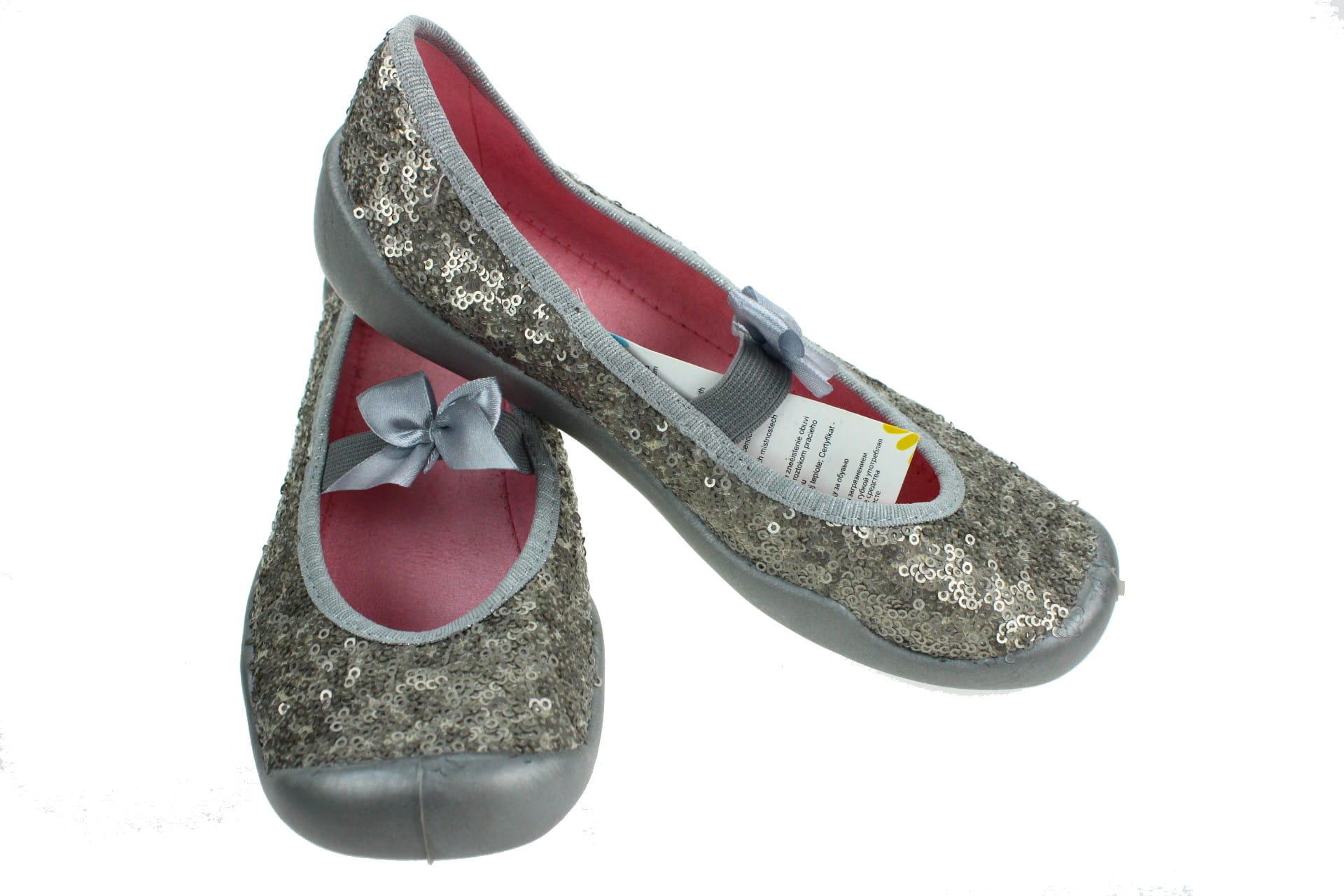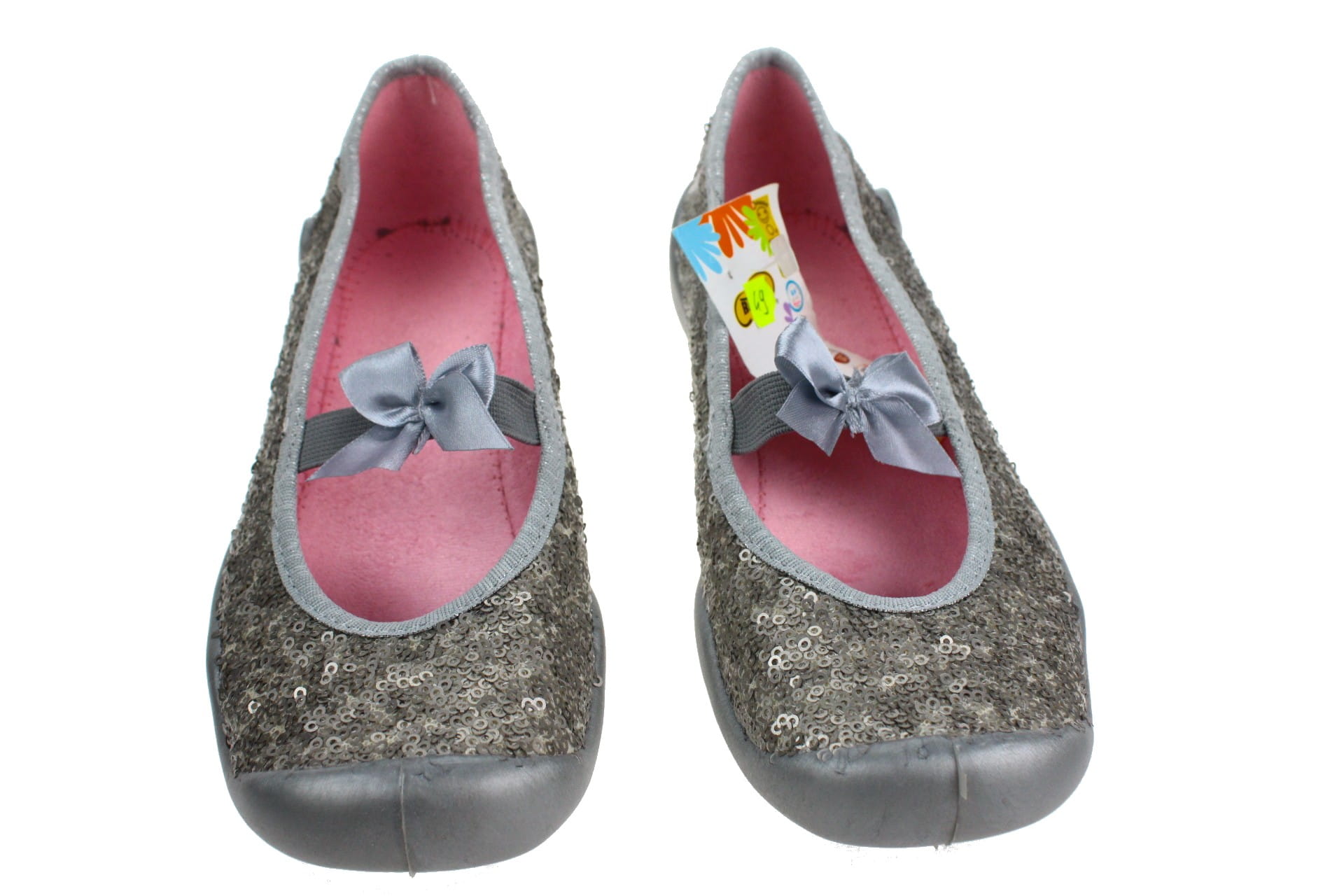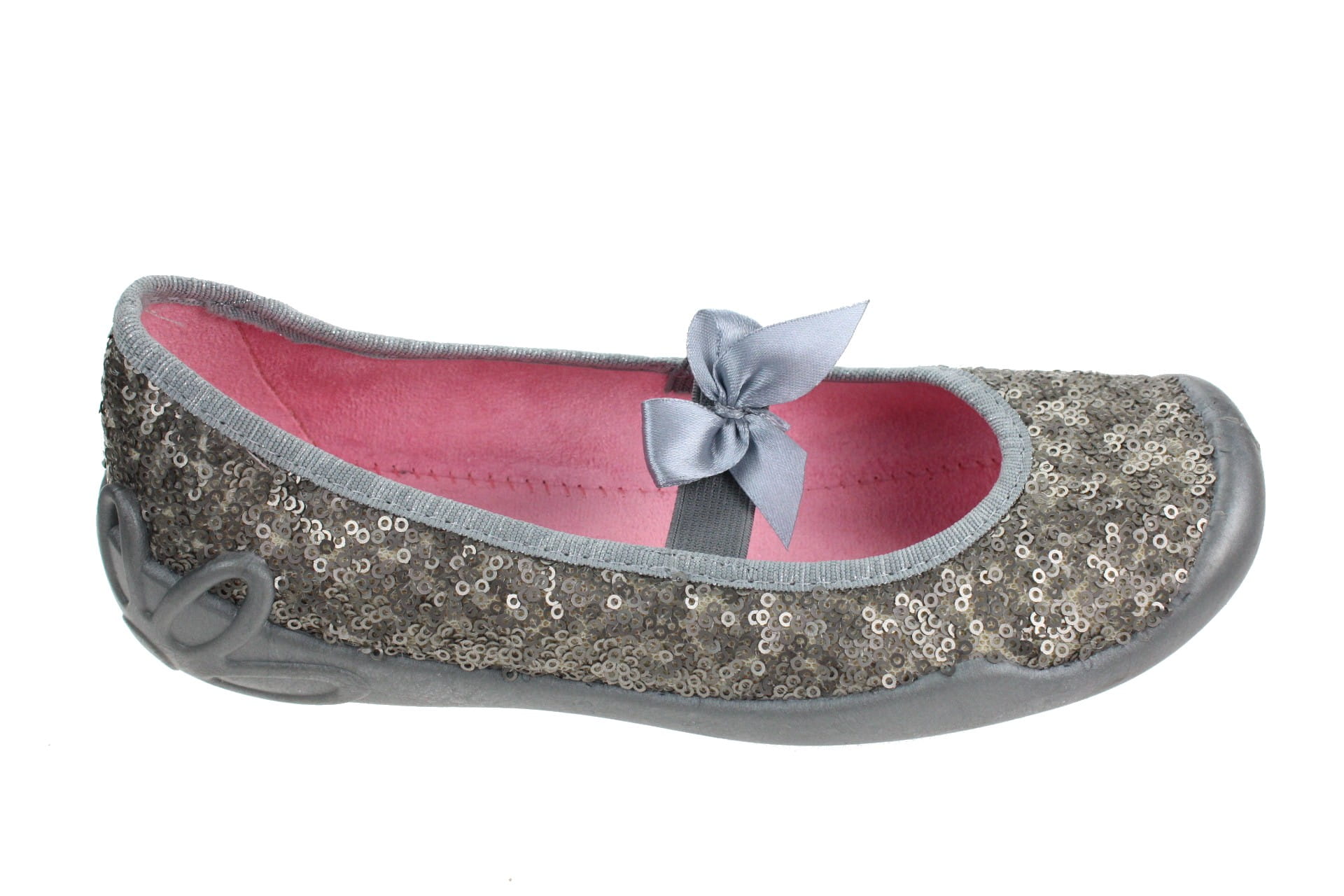 748. Obuwie dziewczęce balerinki Befado 444 Y 014 cekiny popielate