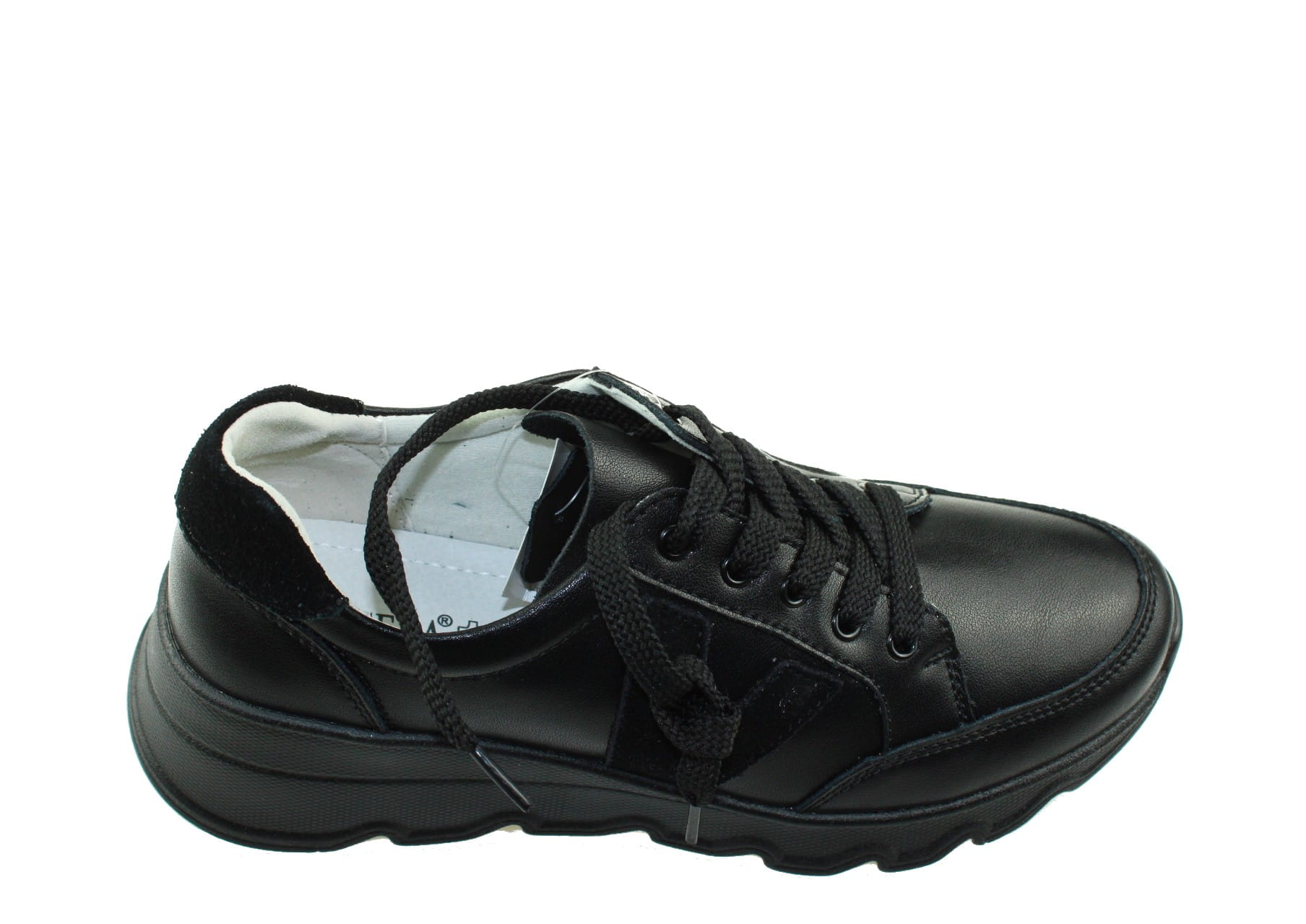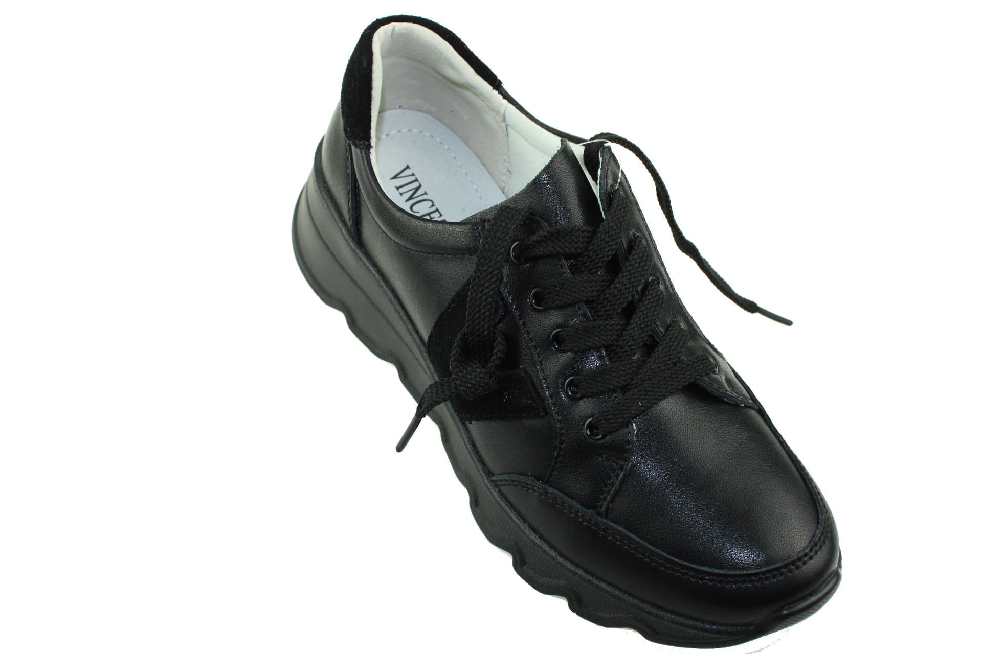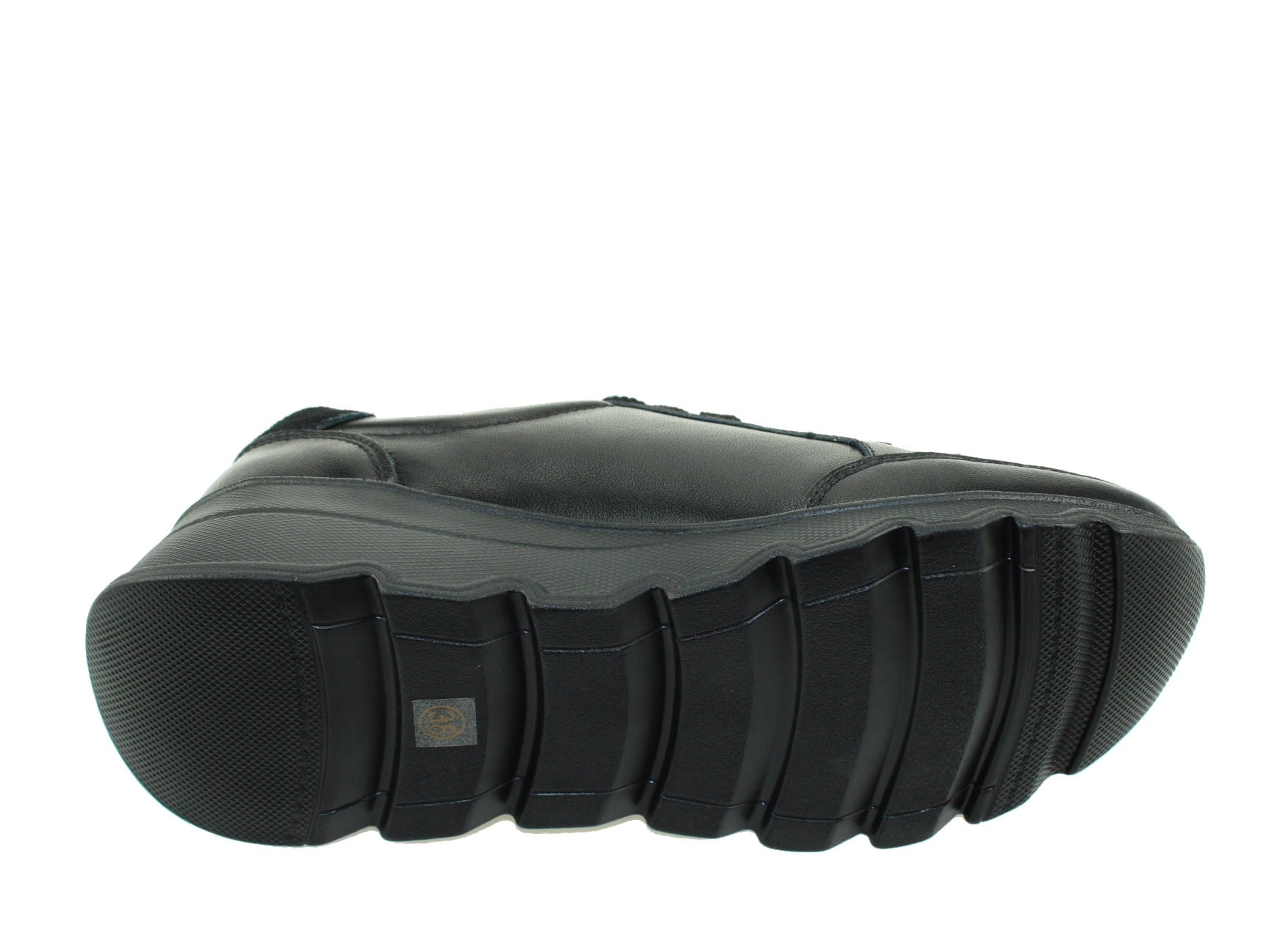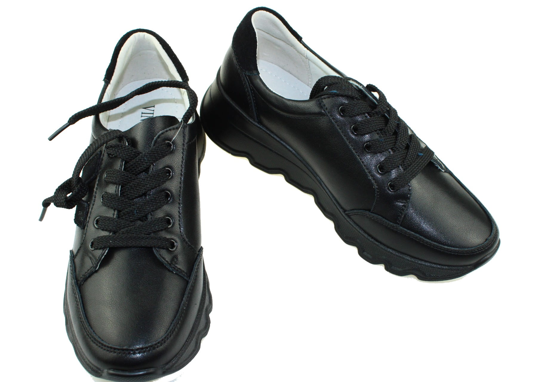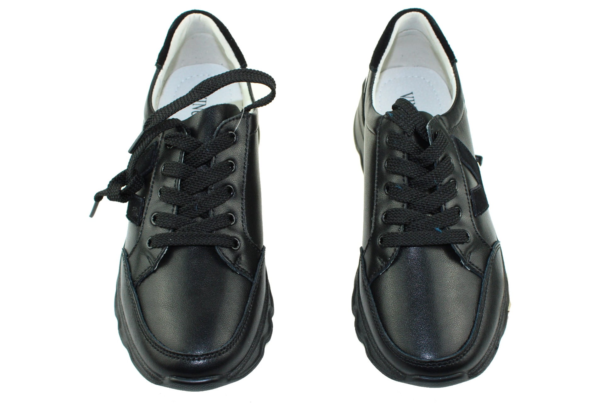 Czarne półbuty wykonane są ze skóry naturalnej.