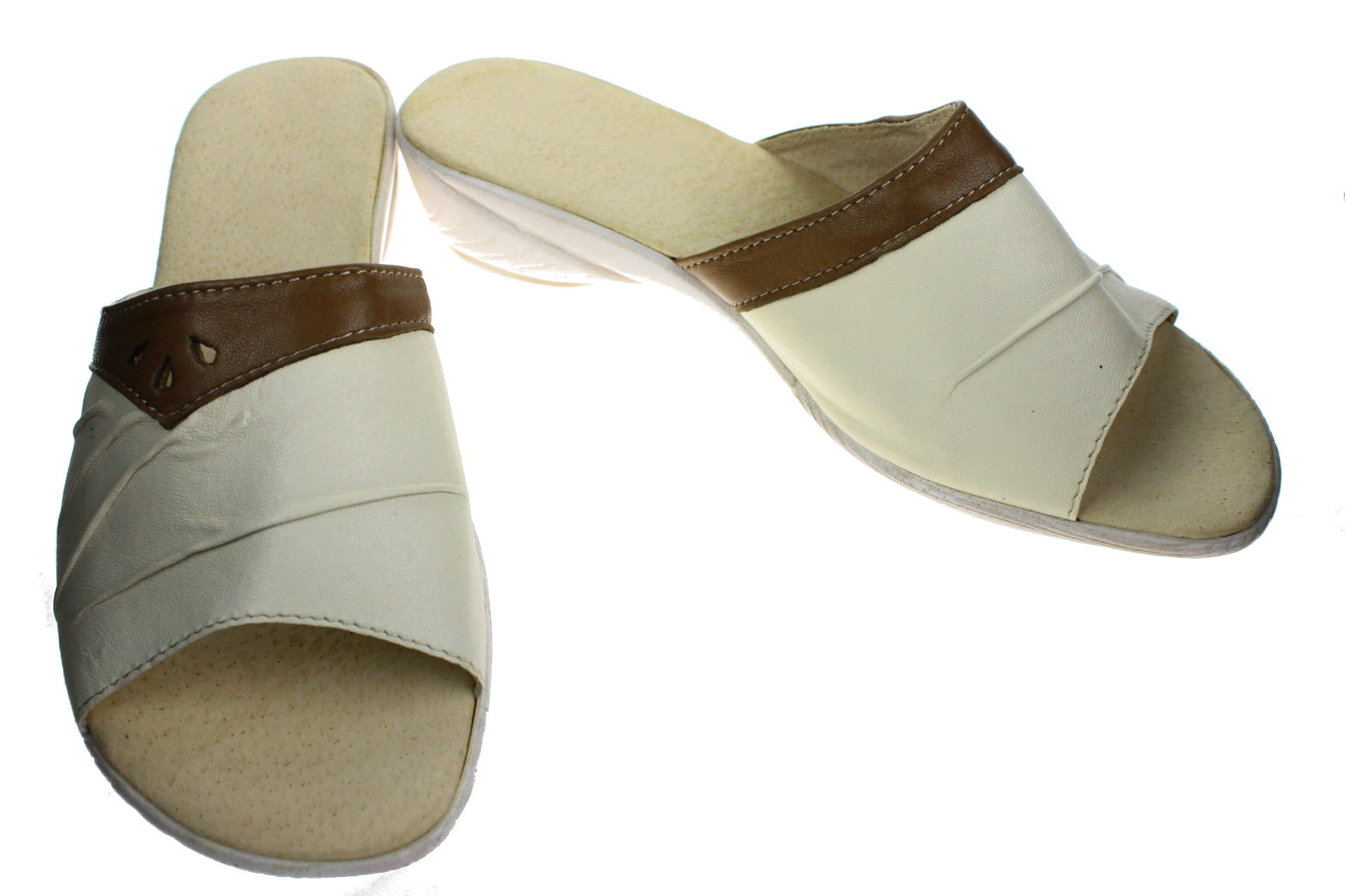 Obuwie damskie, laczki wykonane z cielęcej skóry.