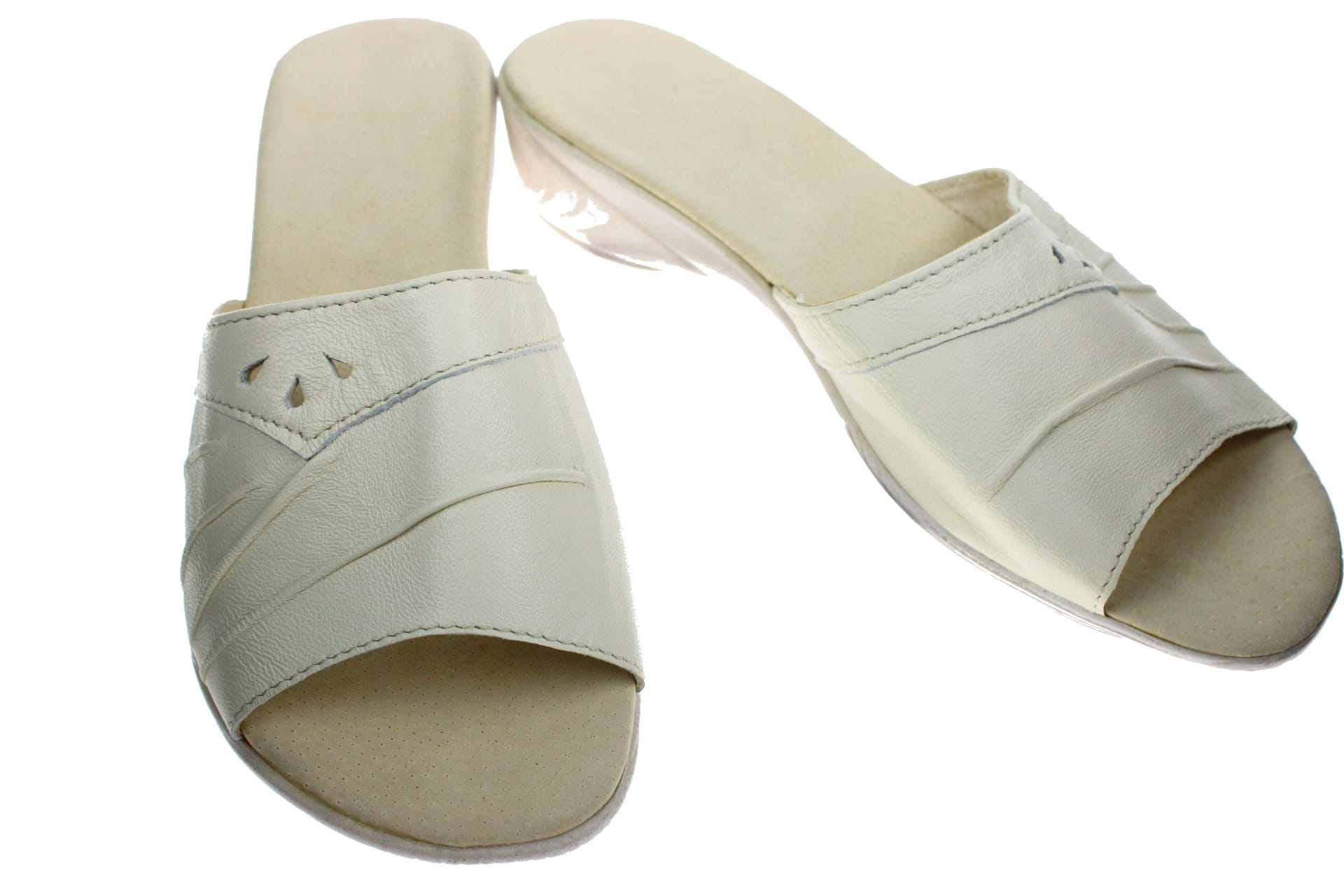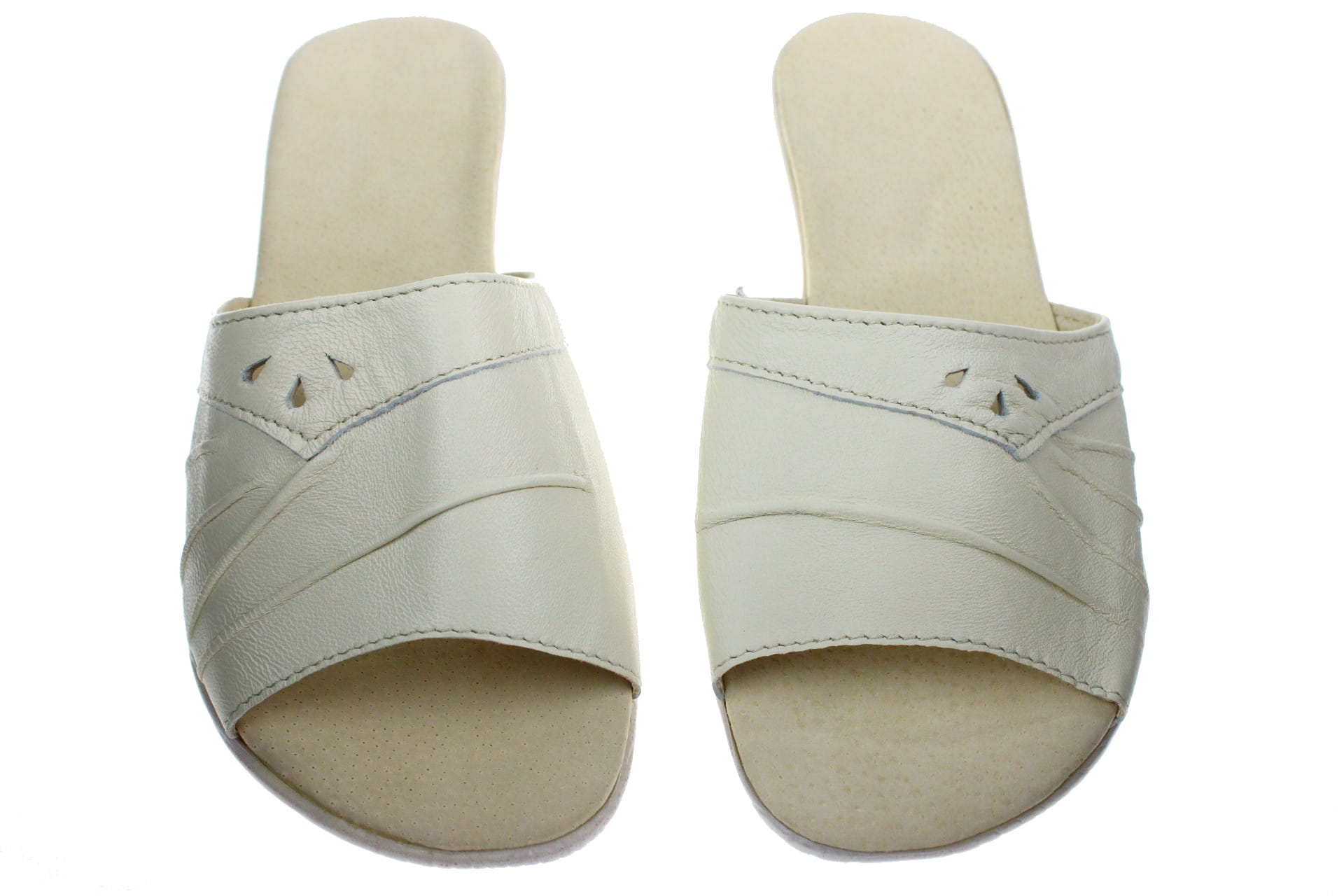 Obuwie damskie, laczki wykonane z cielęcej skóry.