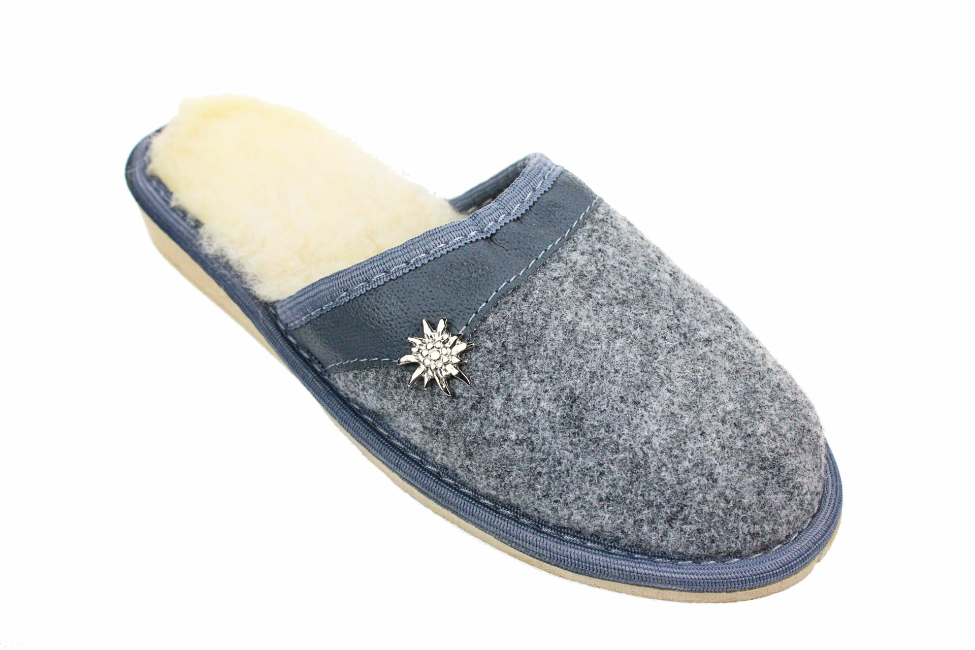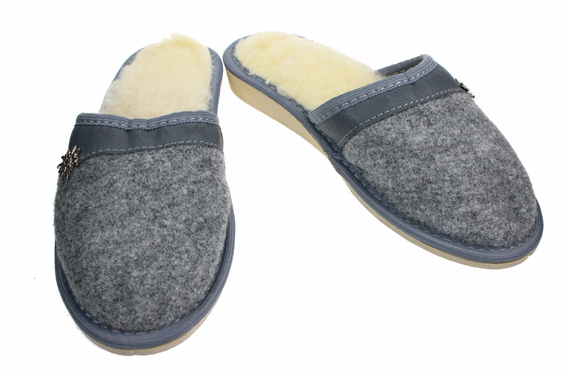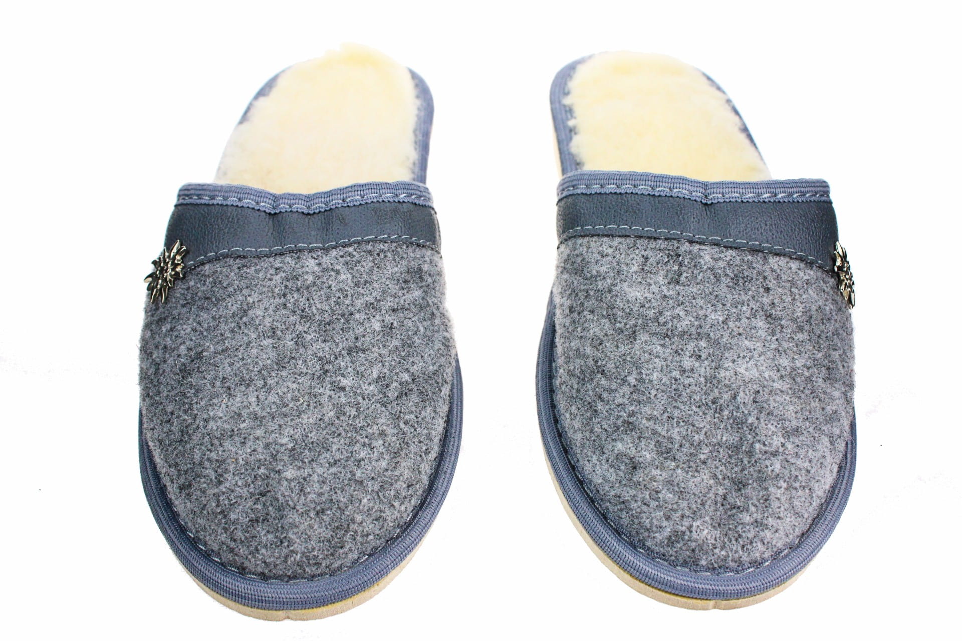 Pantofle damskie, pełne, wykonane z naturalnego filcu.