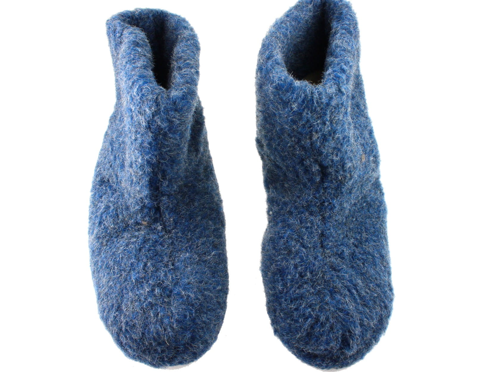 858-F. Bambosze wysokie pełne wełna owcza granatowe