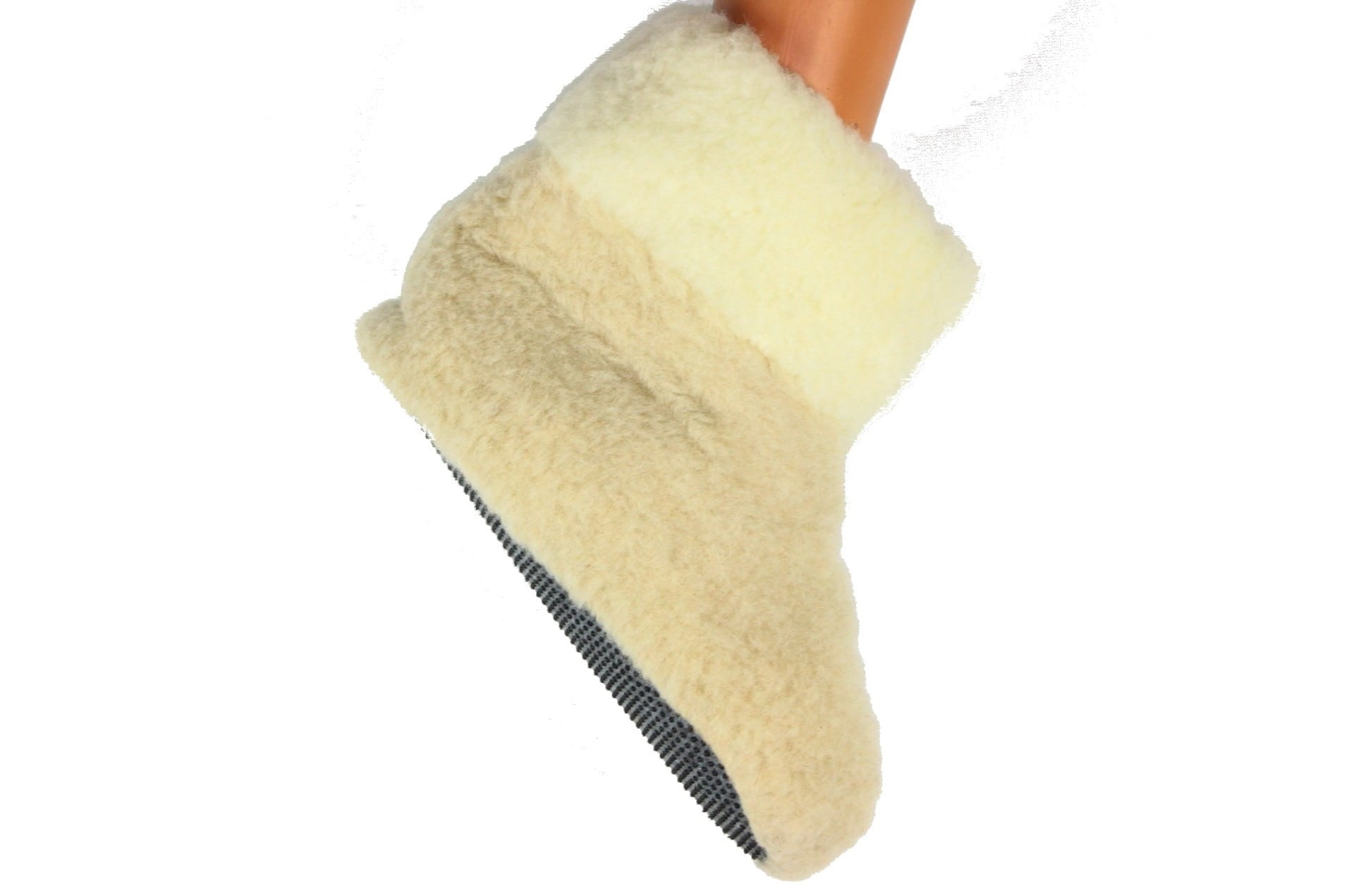 858-L. Bambosze wysokie pełne wełna owcza beżowo-białe