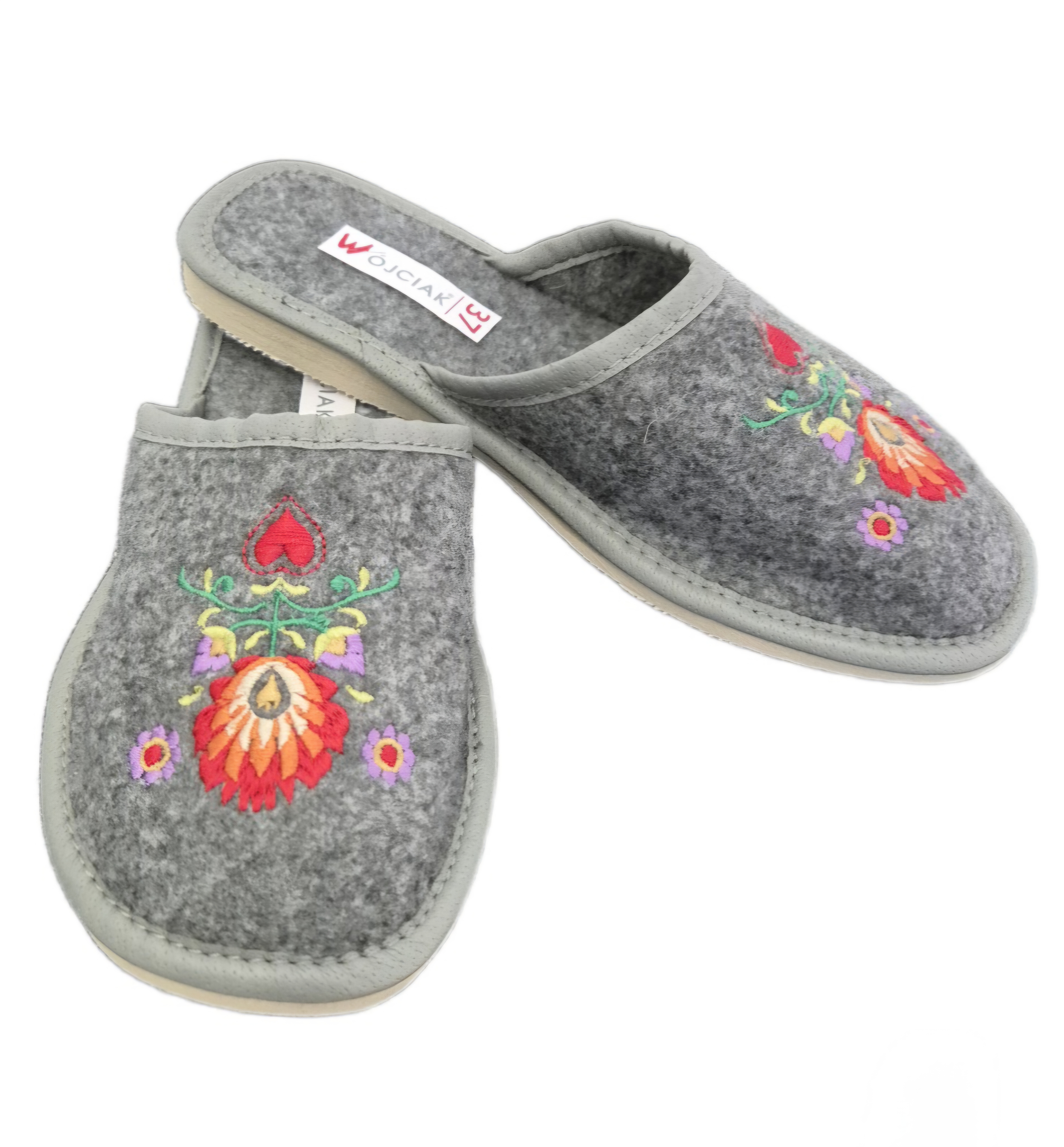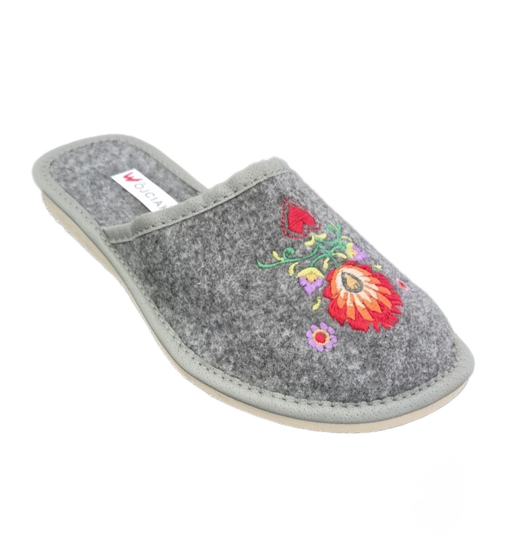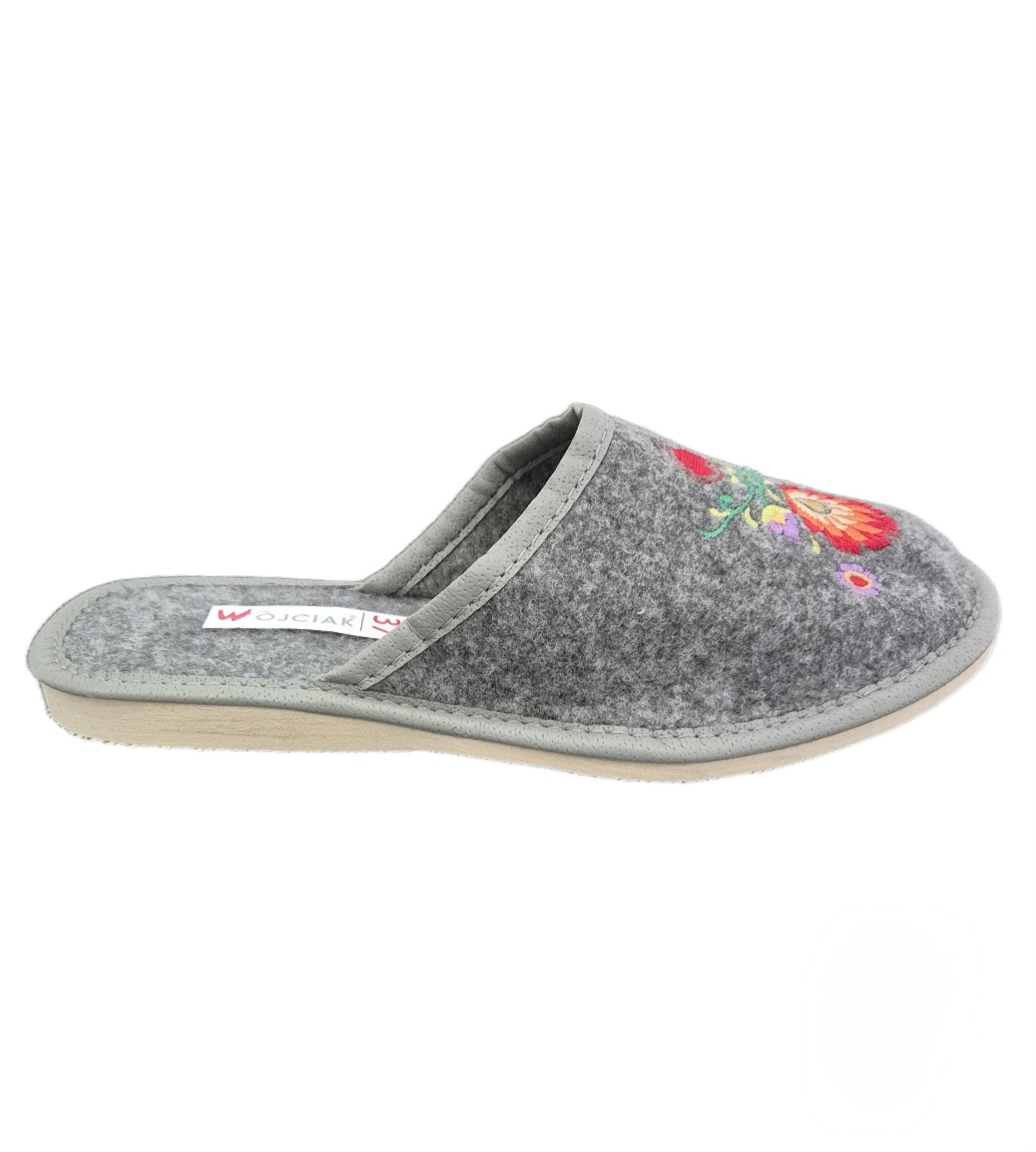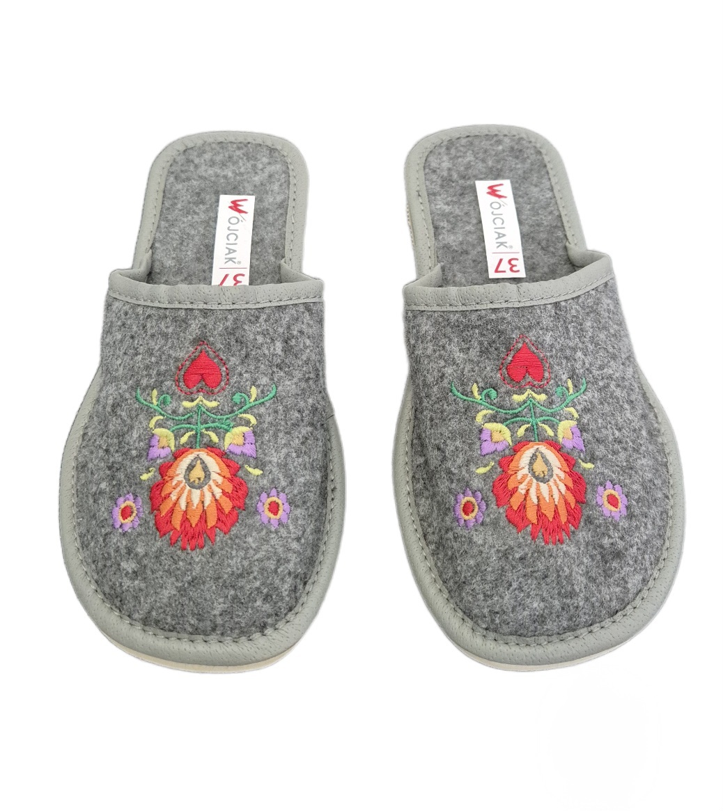 Pantofle damskie, pełne, wykonane z naturalnego filcu.