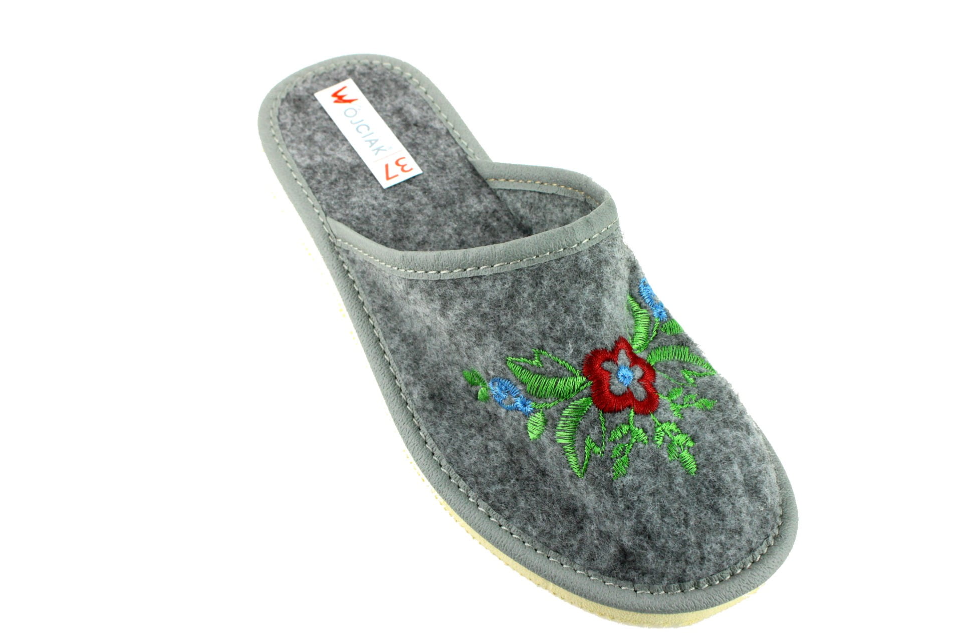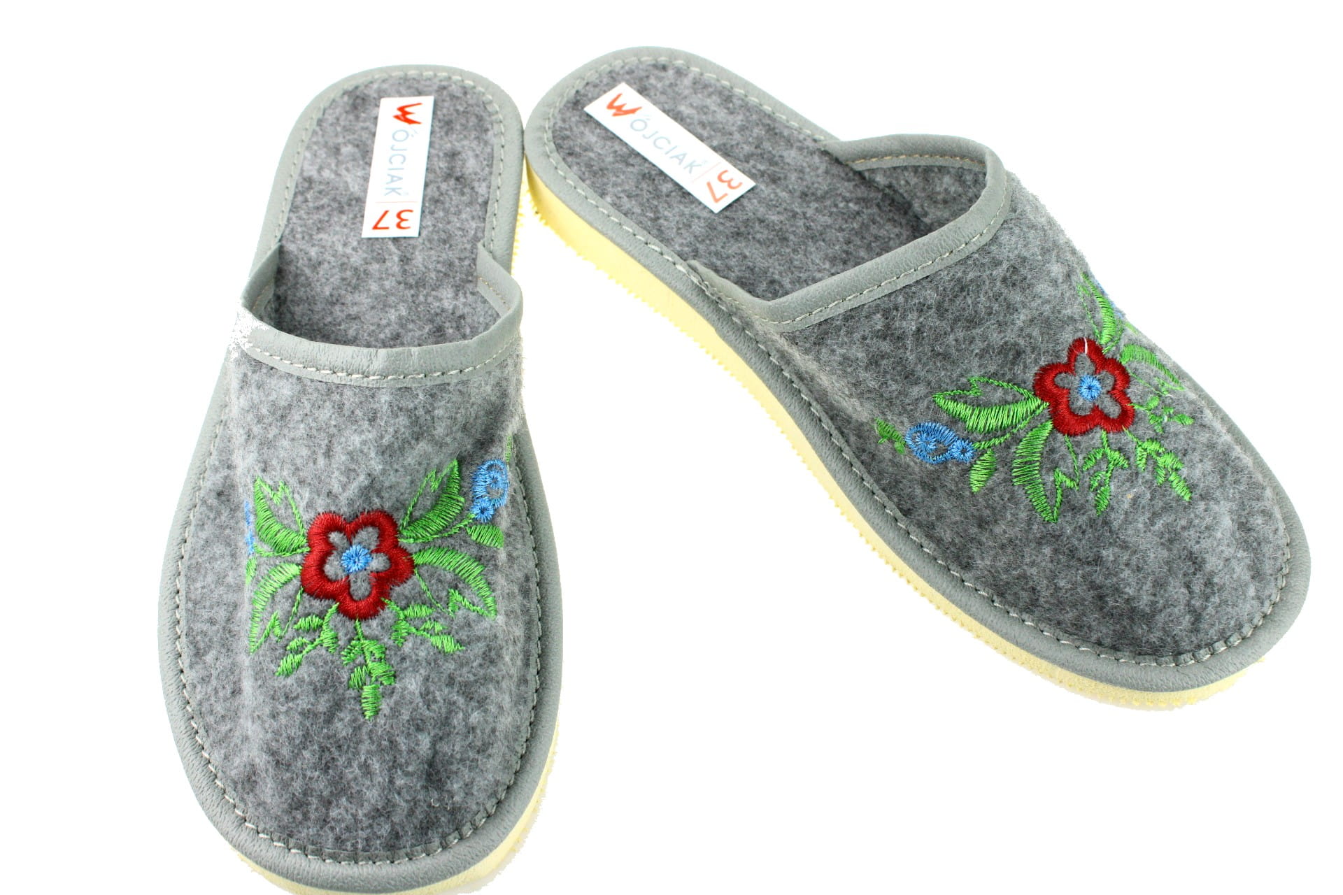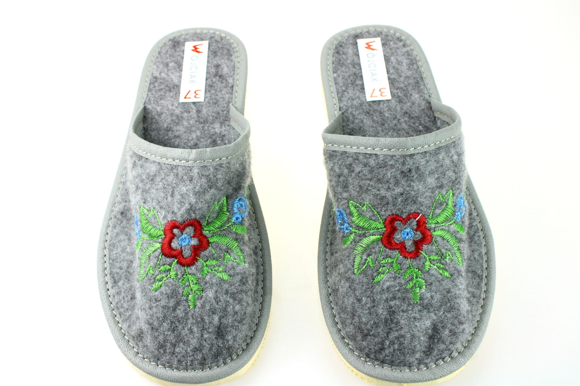 Pantofle damskie, pełne, wykonane z naturalnego fi