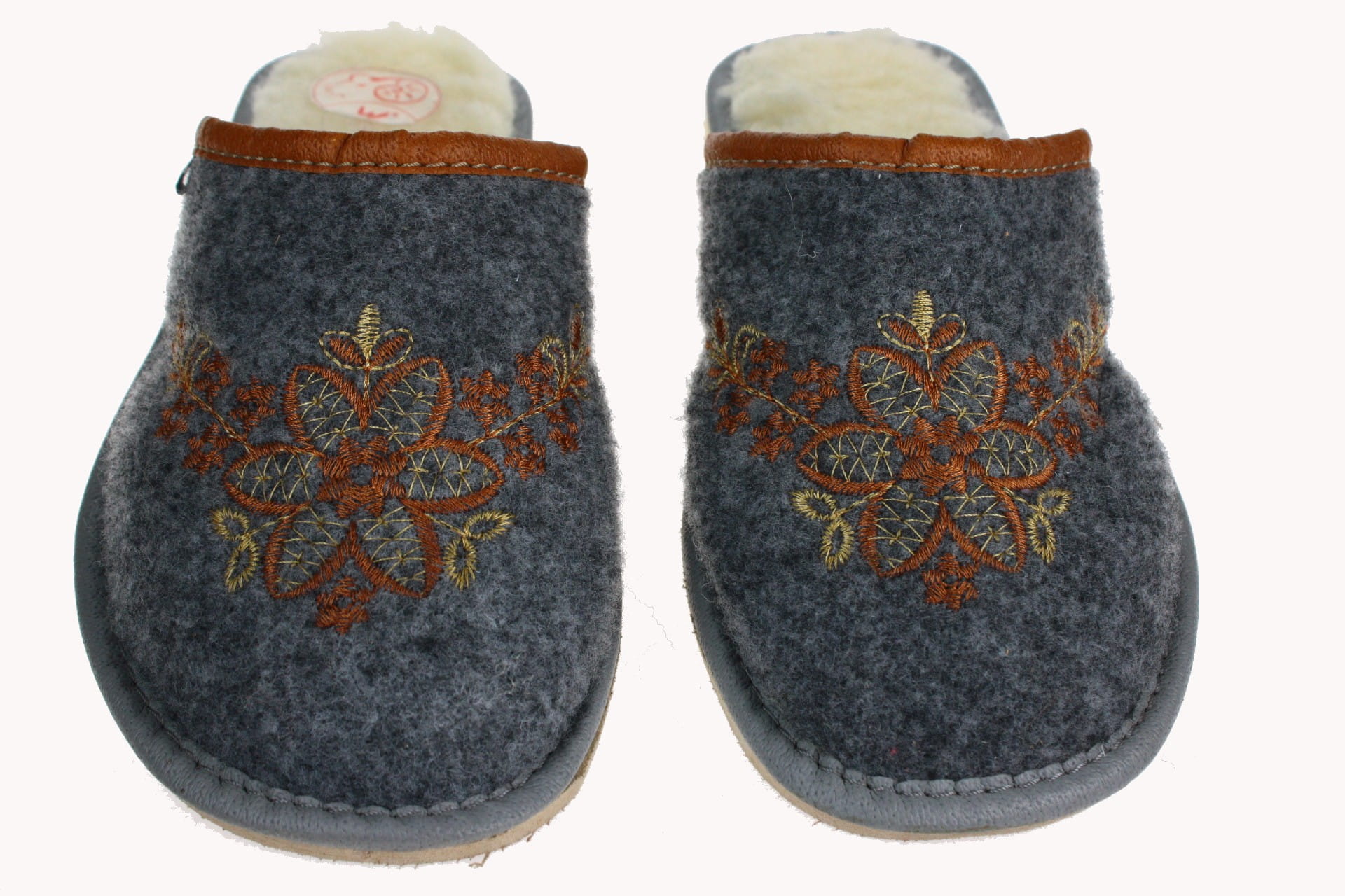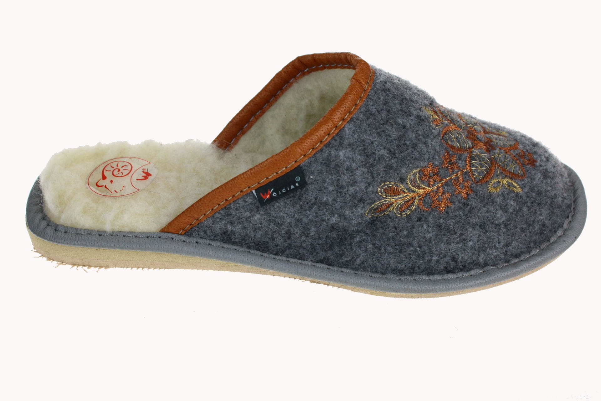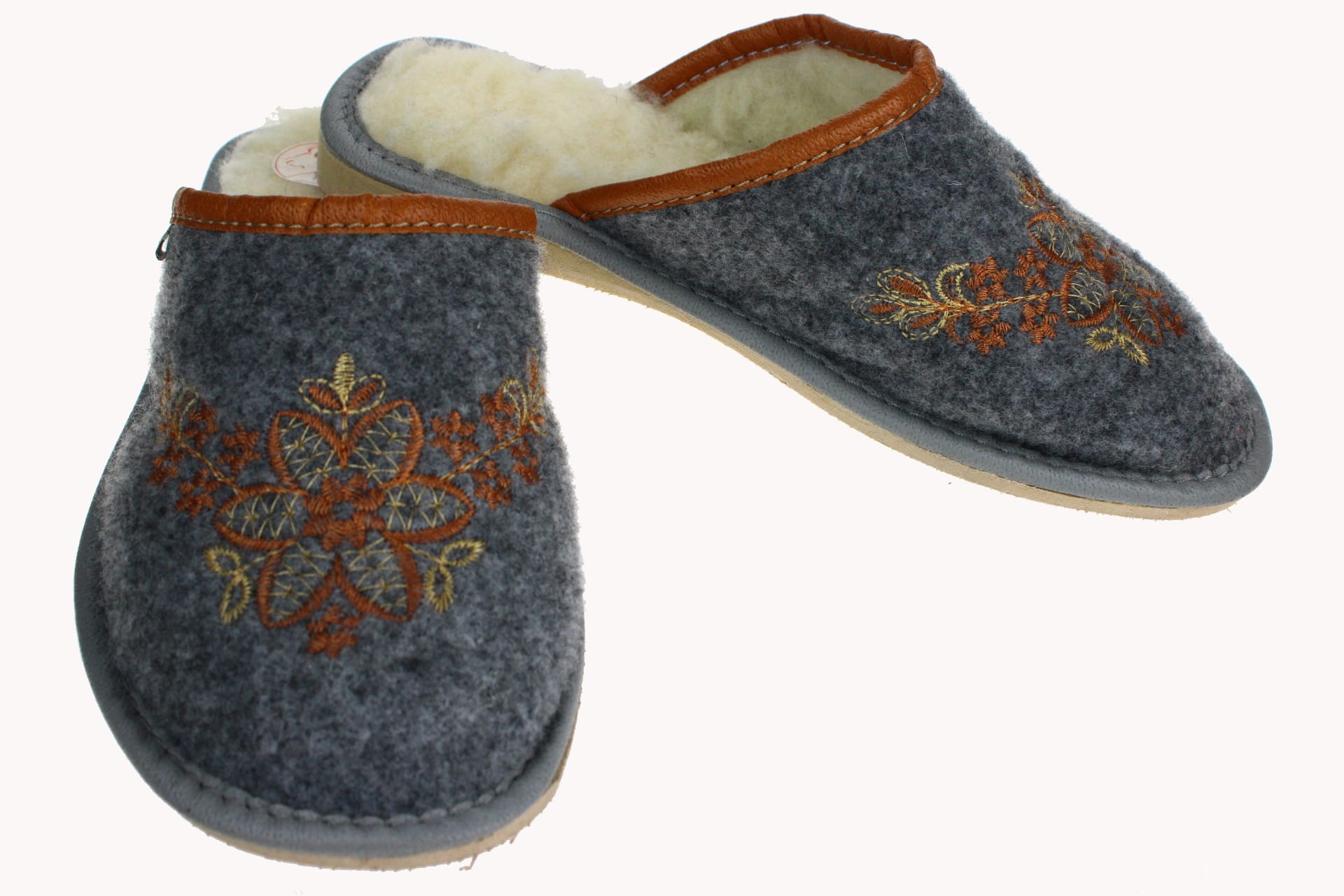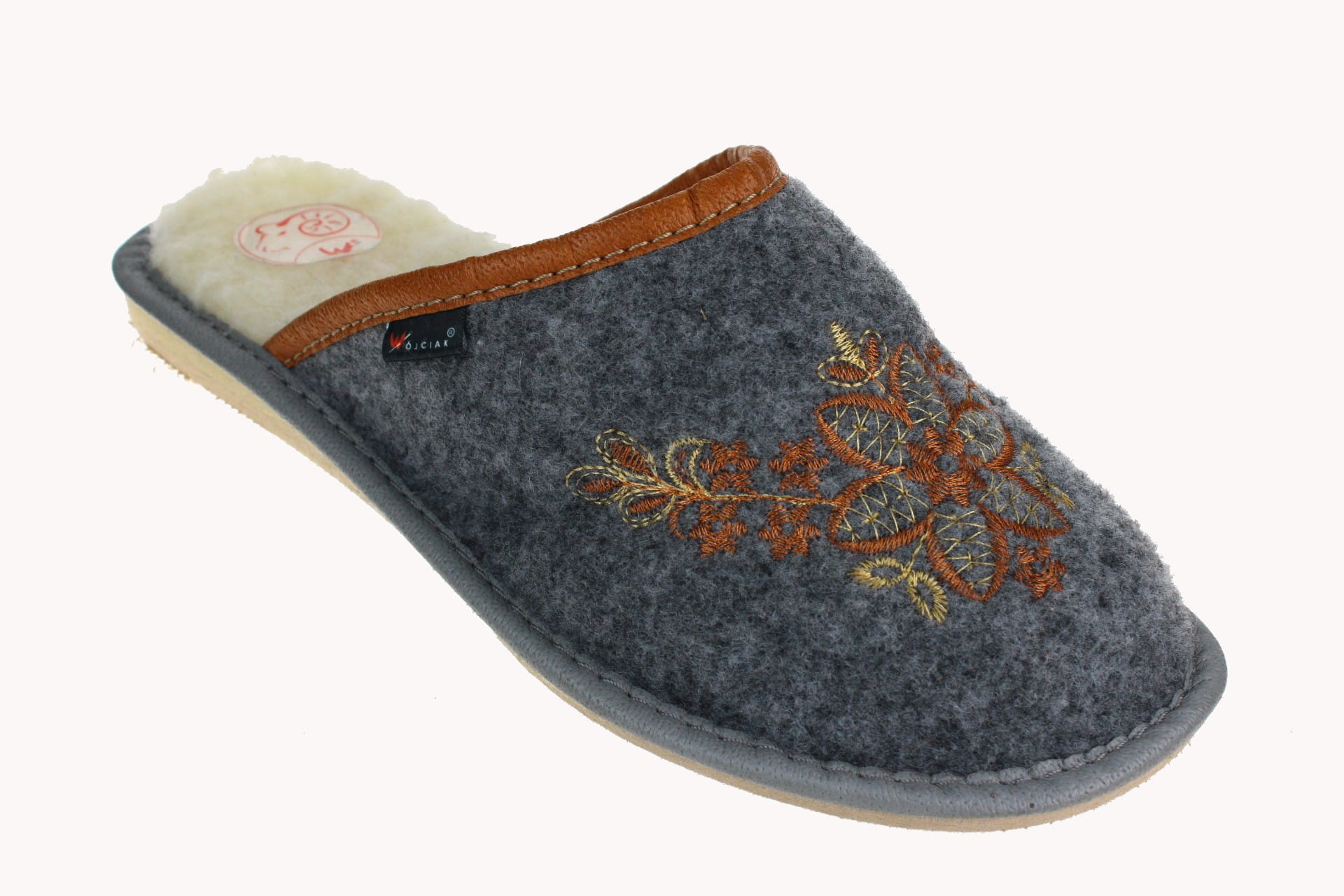 Pantofle damskie, pełne, wykonane z naturalnego filcu.