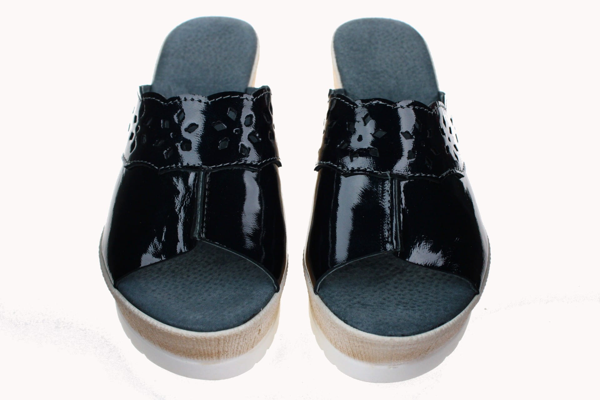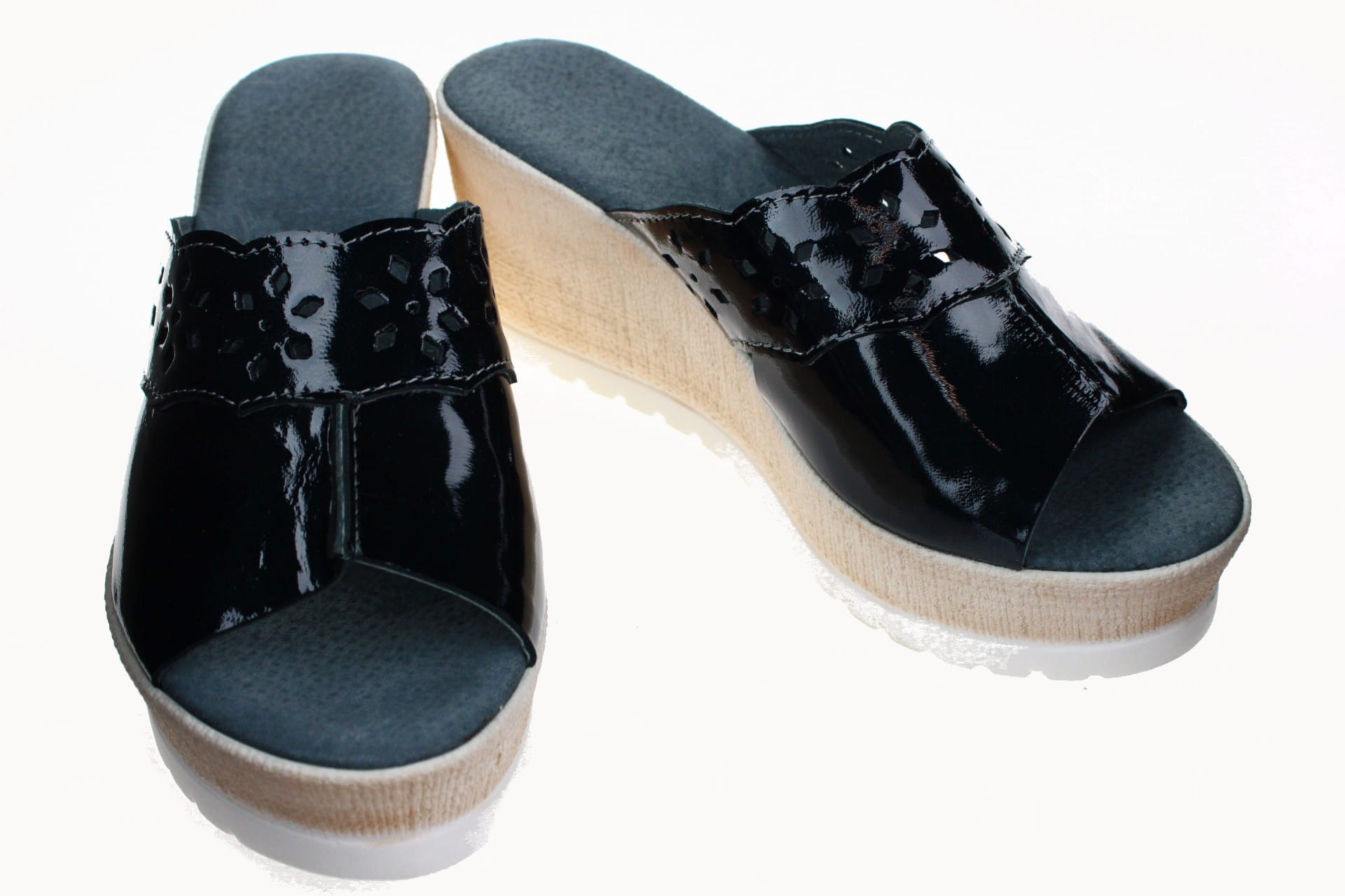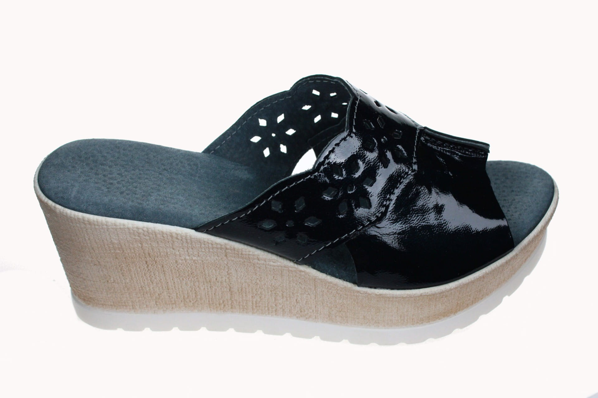 Obuwie damskie, laczki wykonane z cielęcej skóry. Nowoczesny design i ładna kolorystyka. Wkładka skórzana, dzięki której nogi się nie pocą, co daje duzy komfort podczas chodzenia. Spody odlewane, odporne na ścieranie, są lekkie i wygodne. Przeznaczone do uzytku zewnętrznego w okresie letnim. U nas dostępne przez cały rok. Wysokość klina 7 cm.