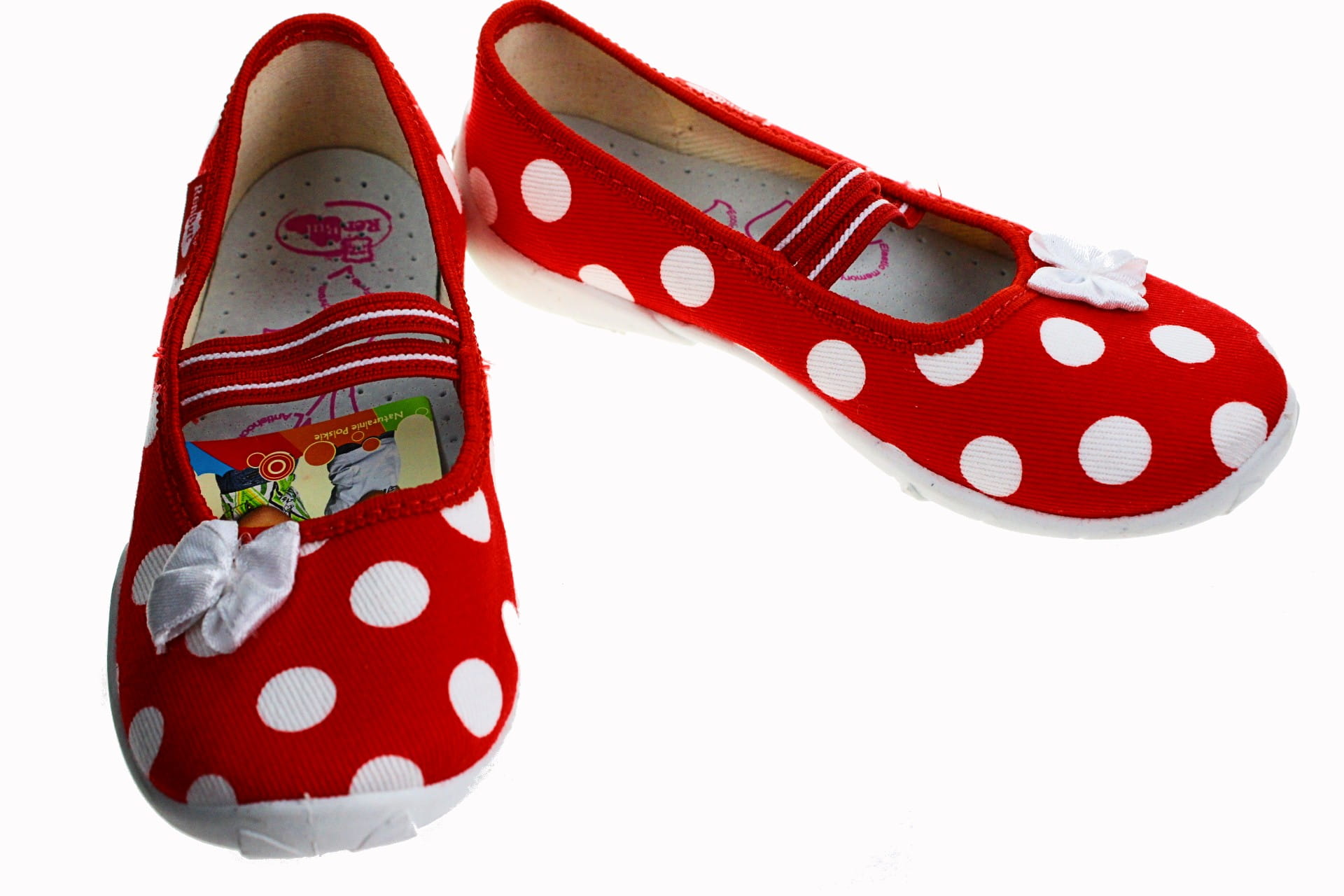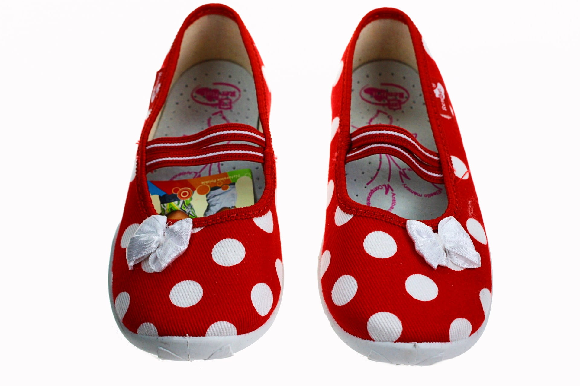 900. Obuwie dziewczęce Ren-But czerwone w groszki