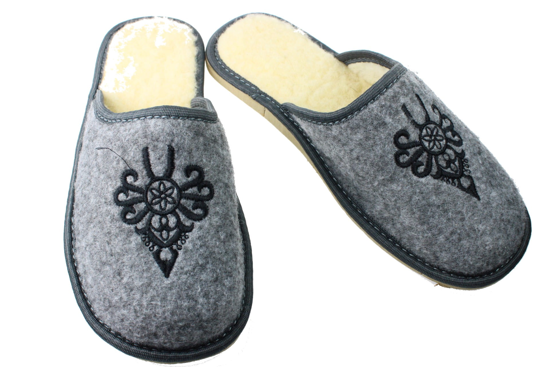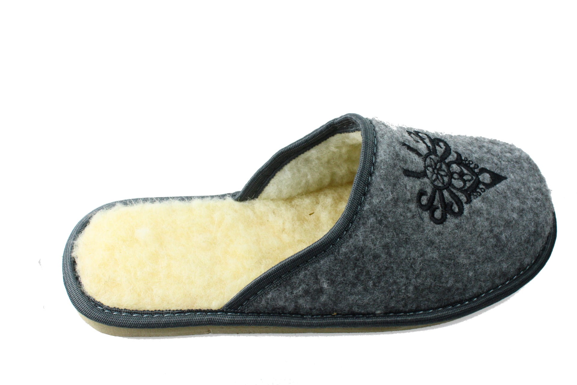 Pantofle męskie, pełne, wykonane z naturalnego filcu.