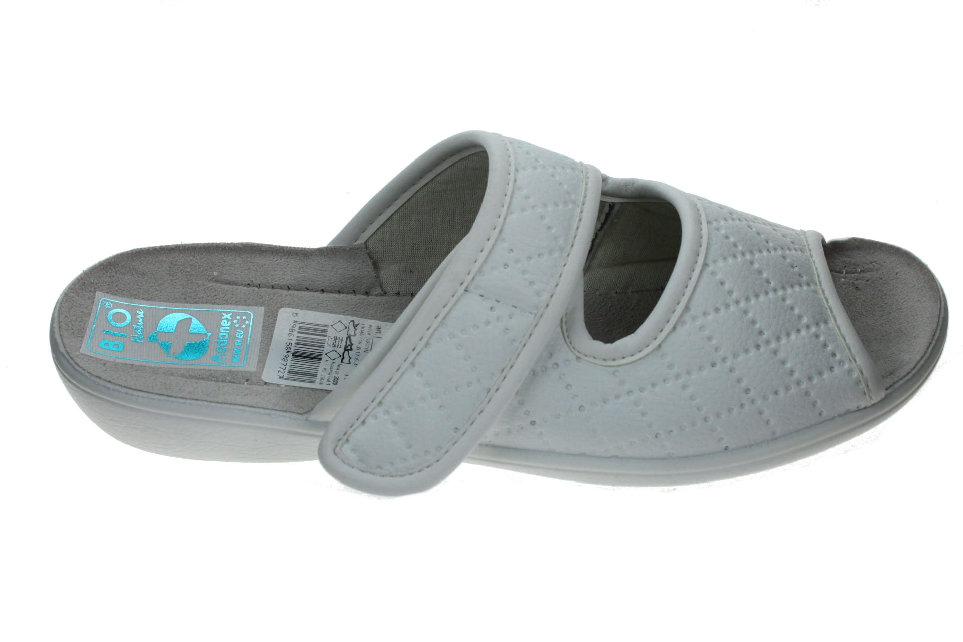 Obuwie damskie wykonane z naturalnych surowców. Zapinane z boku na rzep, zaprojektowane z myślą o użytkowaniu osób z podwyższonym przegubiem. Wkładka bawełniana, zapewniająca stopom odpowiedni mikroklimat. Podeszwa elastyczna, klin o wysokości ok. 2,50 cm. Obuwie jest lekkie i bardzo wygodne dzięki czemu zapewnia komfort i wygodę zmęczonym stopom. Przeznaczone zarówno do użytku domowego jak i na zewnątrz.
