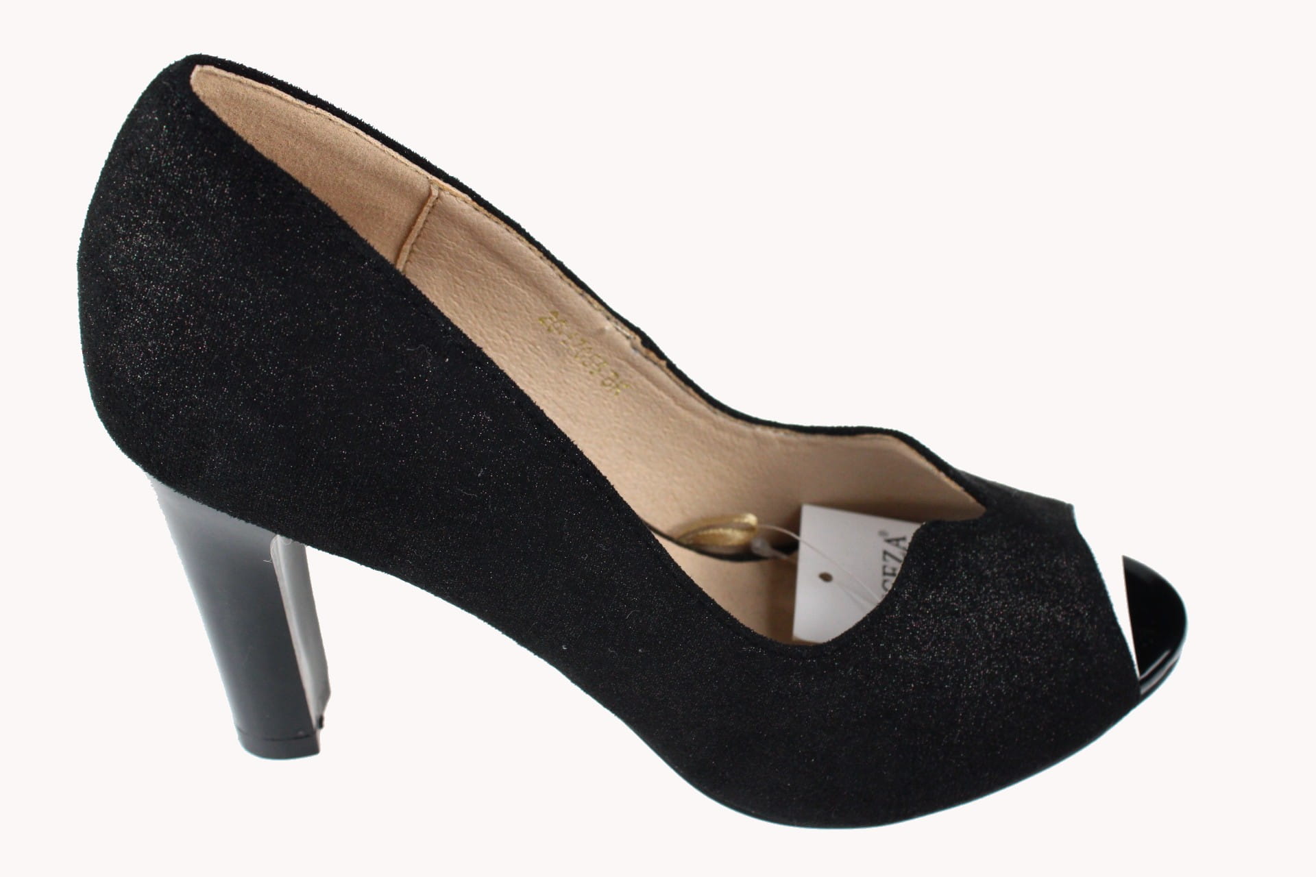 Obuwie damskie, szpilki czarne. Wkładka tekstylna, wyściółka-tekstylna.Wysokość szpilki-8,50 cm.Są wyprofilowane i lekkie.