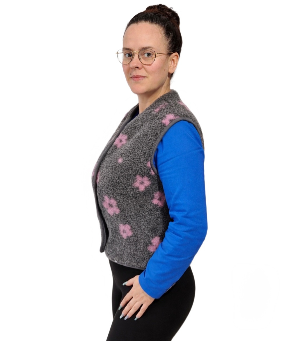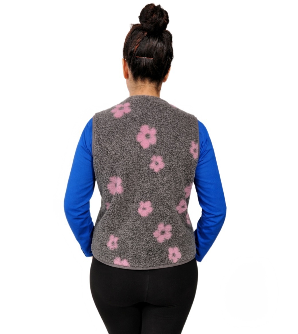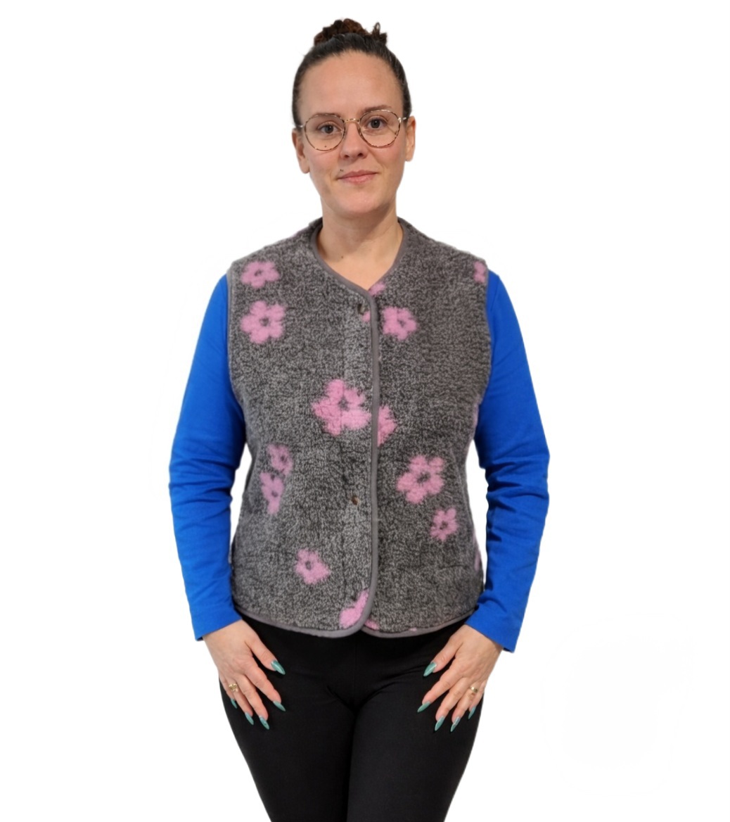 982-6 Kamizelka damska wełna owcza kwiatki różowe