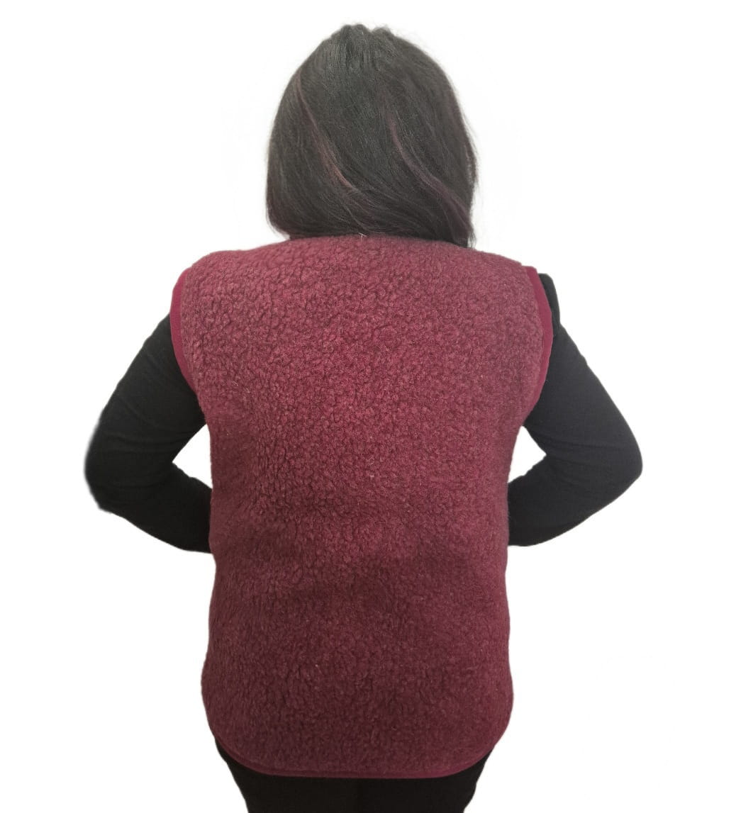 982-ZK-C Kamizelka damska/męska - zamek wełna owcza bordo