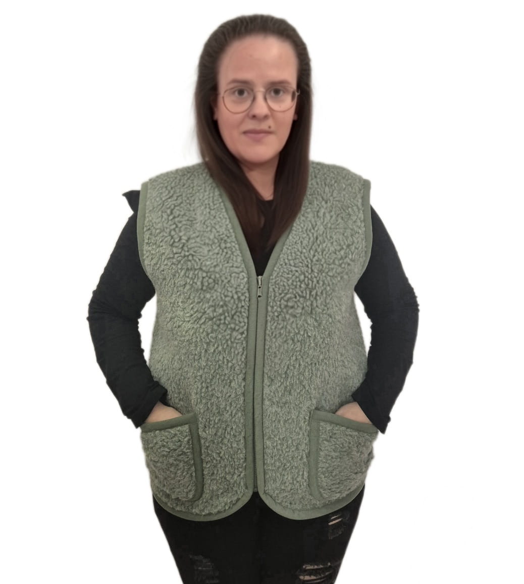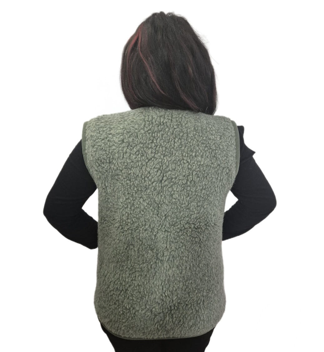 982-ZK-G Kamizelka damska/męska - zamek wełna owcza zielona