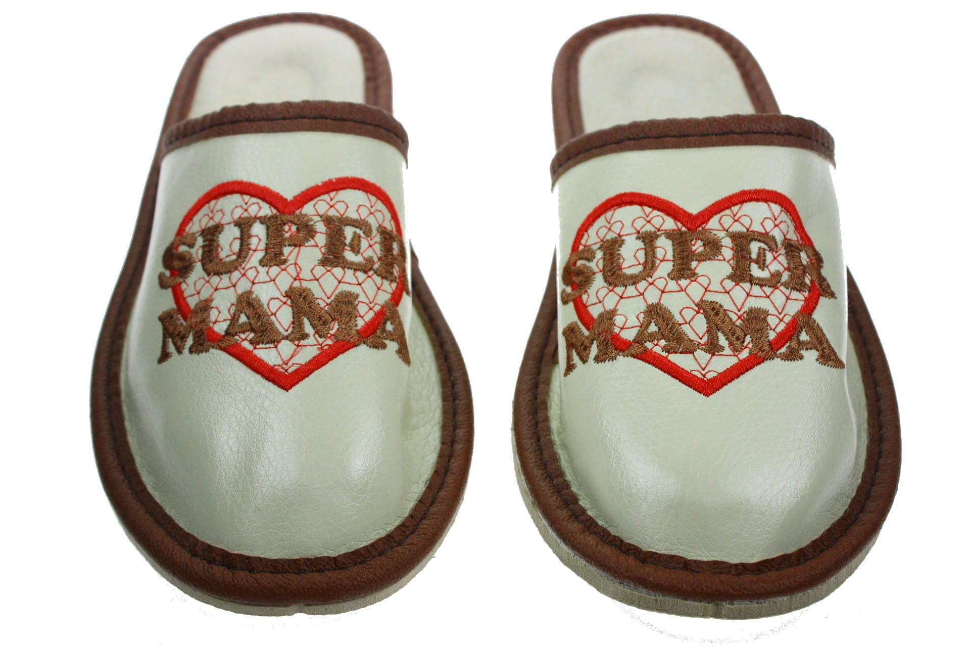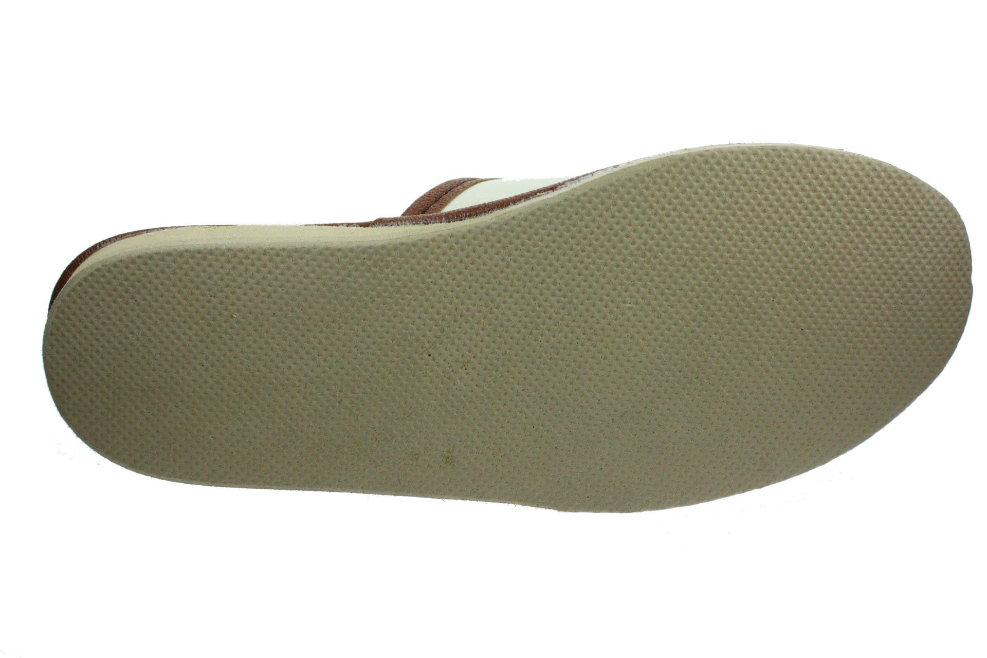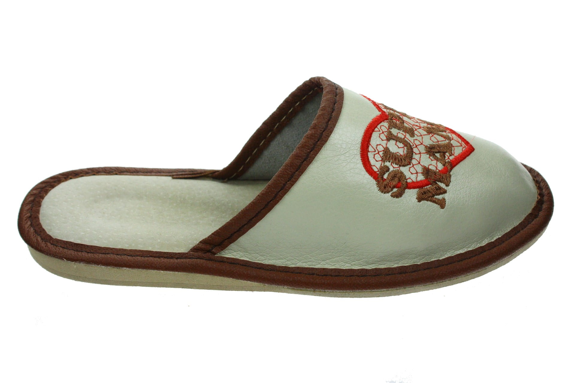 Wykonane z naturalnej skóry w kolorze brązowym. Wkładka skórzana, profilowana. Spód gumowy, antypoślizgowy. Przeznaczone są dla osób, które mają podwyższone przegubie. Są lekkie i wygodne, przeznaczone do użytku domowego. Dzięki temu, że są szerokie, poprawiają komfort chodzenia. Solidne i wytrzymałe.